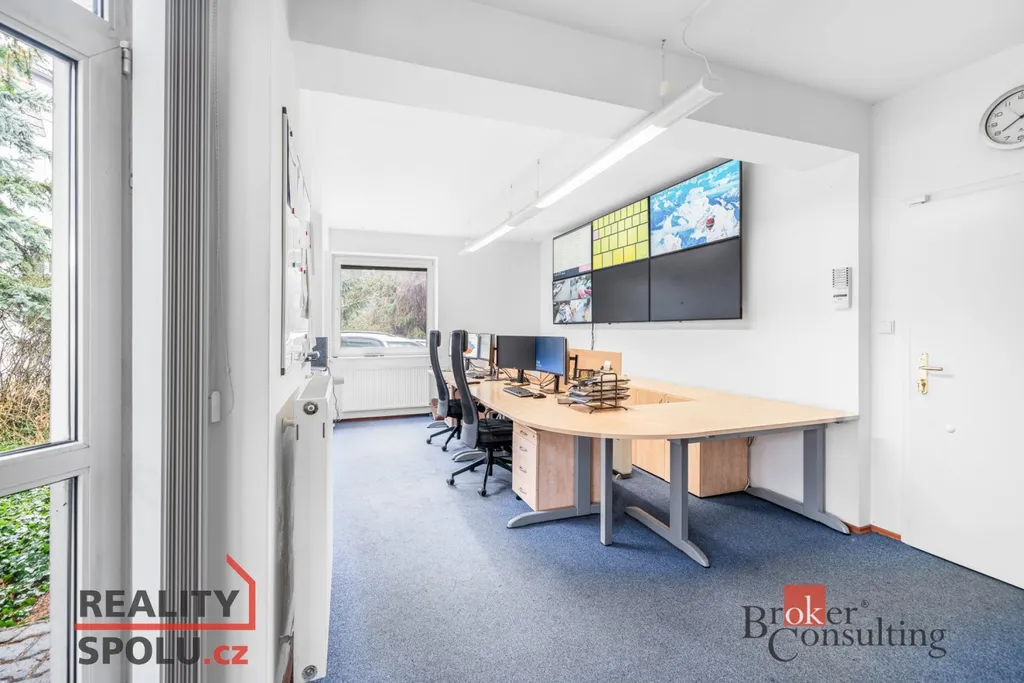 Na prodej administrativní objekt s vlastním pozemkem v obci Průhonice, který lze rekolaudovat na prostorný rodinný dům. Jedná se o třípatrovou budovu o celkové výměře 447 m², včetně parkovacích míst za branou pro minimálně 12 aut. Aktuálně je budova rozčleněna na 9 oddělených místností, což poskytuje široké možnosti přizpůsobení dispozic pro rodinné bydlení. Přízemí nabízí vstupní halu, kancelář, zasedací místnost a garáž, která by mohla sloužit jako sklad nebo parkovací prostor. První patro obsahuje pět místností vhodných pro ložnice nebo pracovny, druhé patro pak disponuje dvěma místnostmi a velkým prostorem, ideálním pro společenské aktivity. Nový plynový kotel Viessmann zajišťuje efektivní vytápění a ohřev TUV. Na pozemek je vjezd automatickými vraty a vše je zabezpečeno EZS. Okolní zeleň zajišťuje příjemné prostředí pro relaxaci. Díky výborné dostupnosti Prahy a dálnice D1 je tento objekt ideální pro rodinné bydlení.
