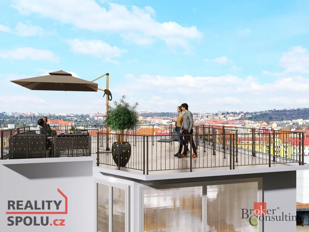 Nabízená jednotka je dispozičně 3+KK, se střešní terasou terasou s výhledem na Prahu. Nachází se v 7. NP.