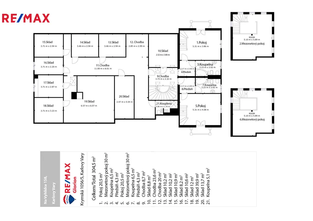 V prvním a druhém nadzemním podlaží se nachází už jednou zmiňované pokoje a apartmány. Podkroví pak ukrývá dva byty a velký nevyužitý prostor, který si můžete dokončit podle svých představ - zde byla i vypracována studie pro zvýšení kapacity. Ať už přistavíte další pokoje, byty, nebo jiné zázemí, meze se tu nekladou a vše je jen na Vaší představivosti