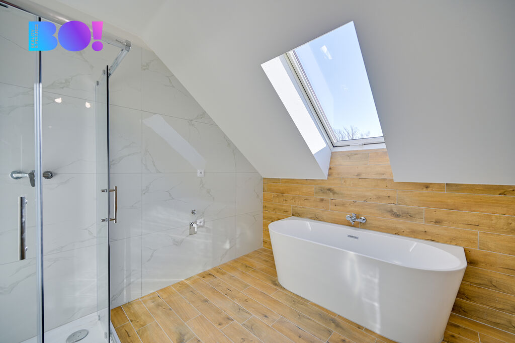 Bydlení bez sousedů nad vámi i vedle vás zaručuje komfort a soukromí. Velkorysý obývací pokoj s kuchyní o rozloze 45 m² je ideální pro rodinné setkání i zábavu s přáteli. Další prostory zahrnují prostornou ložnici, dva pokoje, koupelnu s vanou, sprchovým koutem a WC, a praktickou technickou místnost.