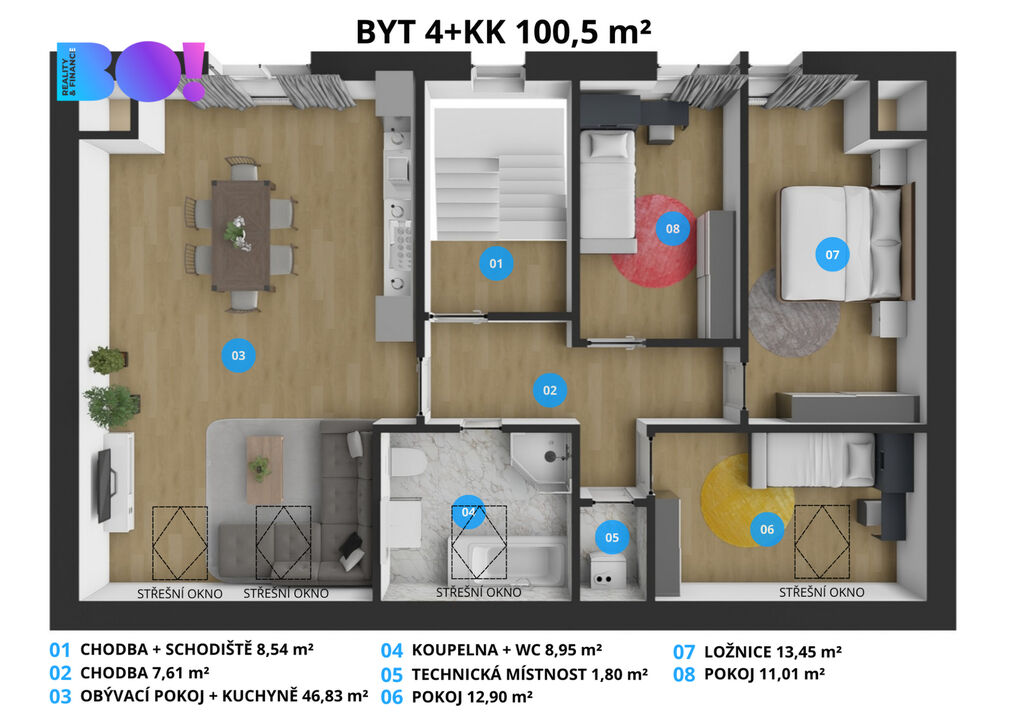 Představujeme vám jedinečný byt v podkroví kompletně rekonstruovaného domu, který kombinuje klid, prostornost a nízké provozní náklady! Tento byt o velikosti 102 m² s vyhrazenou částí zahrady k bytu o velikosti 81 m² vám poskytne dostatek místa pro relaxaci i praktické využití. Cena zahrady je 162 000,- Kč a je nyní jako sleva součástí ceny bytu.