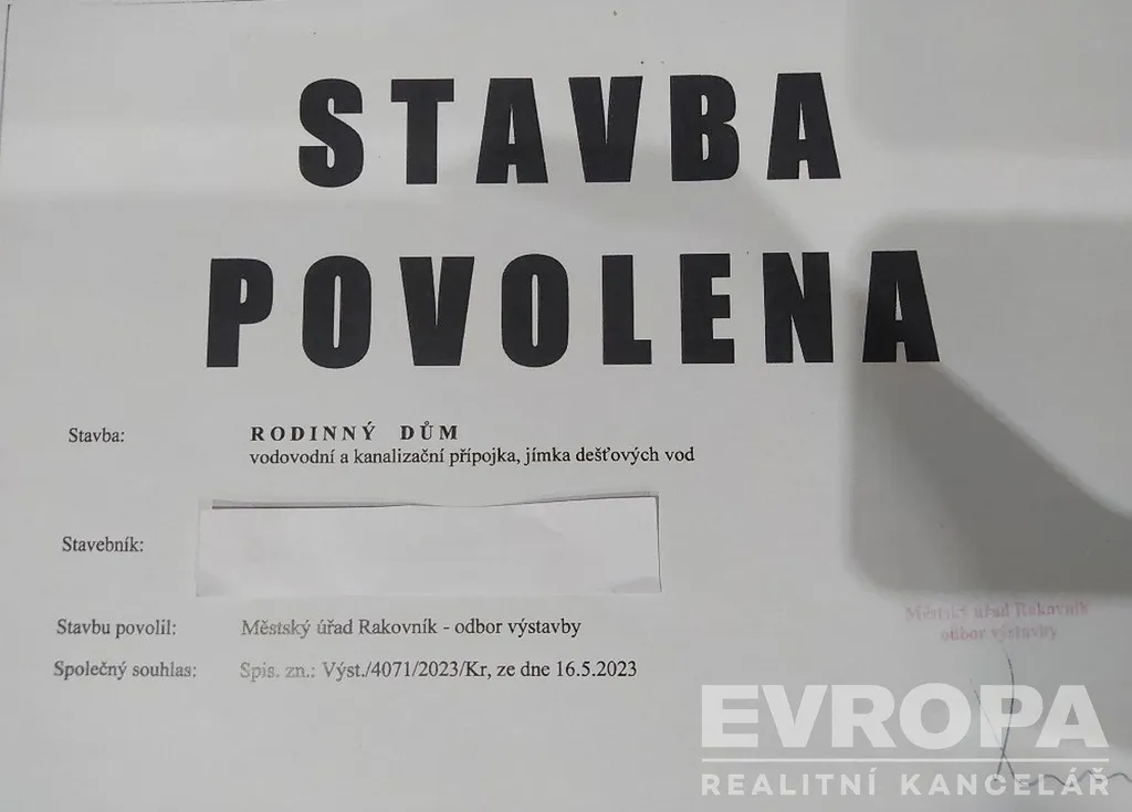 Prodej pozemku 1300m2 pro stavbu RD v obci Lubná u Rakovníka. Na parcelu je již vydáno stavební povolení na stávající projekt, viz fotografie. Projekt je v ceně. Samozřejmě možno změnit. Pozemek se nachází na okraji obce. Elektřina na pozemku, voda a kanalizace před pozemkem v cestě. Příjezd po obecní cestě. V místě ZŠ a MŠ, obecní úřad, restaurace, obchod. Internet v obci. Cena k jednání.