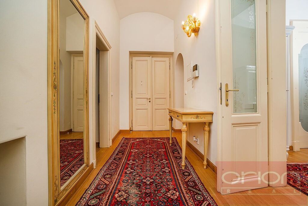 Nabízíme k pronájmu nadstandardně zařízený byt 4+kk s celkovou plochou 120 m2 v 1. patře zrekonstruovaného činžovního domu s výtahem v klidné ulici v centru Prahy 1 - Nové Město pár kroků od Náměstí republiky. u nákupního centra Palladium. Stylově zařízený byt nabízí vstupní chodbu, obývací pokoj, plně vybavenou kuchyň, 2-3 ložnice - jednu s vlastní koupelnou s vanou a toaletou, druhou koupelnu se sprchovým koutem, toaletou a bidetem. K vybavení bytu patří dřevěné parkety a dlažba, klimatizace, je vybaven ve vysokém standardu včetně nádobí a ručníků. V lokalitě je veškerá občanská vybavenost, restaurace, kavárny, obchody, nedaleko je park Letná. Pár minut pěšky ke stanice metra a tramvají Náměstí Republiky.