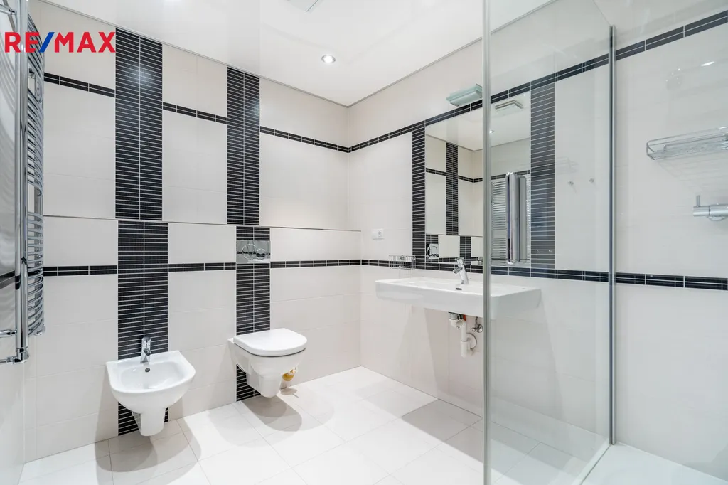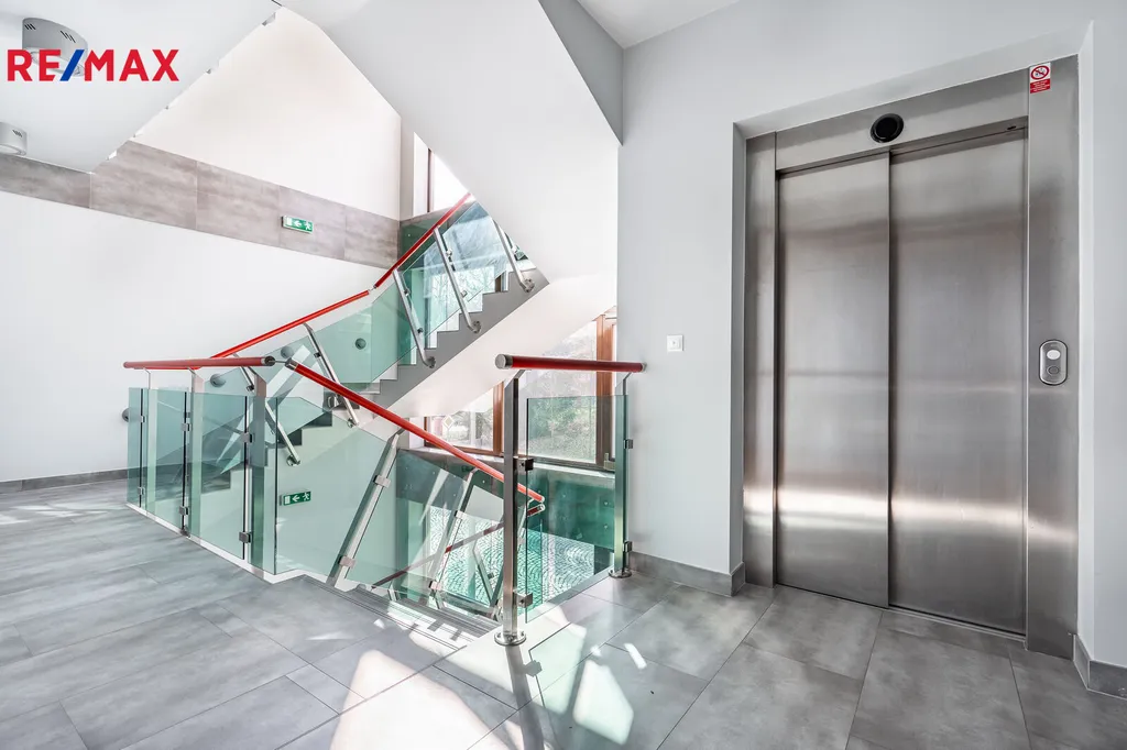Předsíň disponuje dostatkem prostoru pro úložné řešení i volný pohyb. Byt má také samostatnou toaletu pro hosty, což přispívá k pohodlí celé domácnosti. K dispozici je výtah a možnost pronájmu parkovacího stání v garážích přímo v domě. Vše bylo navrženo tak, aby váš životní prostor byl co nejkomfortnější a praktický.