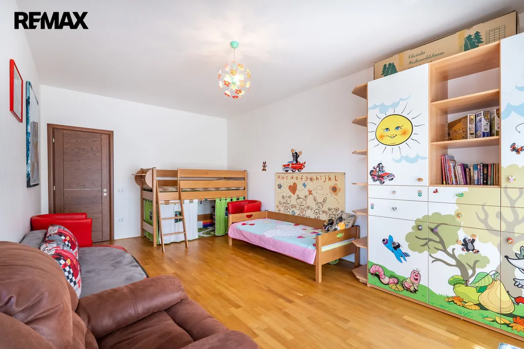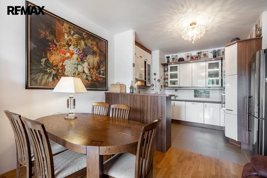 Byt je promyšleně navržen tak, aby poskytoval maximální pohodlí a dostatek soukromí. Dominantou je prostorný obývací pokoj spojený s kuchyňským koutem, který tvoří hlavní společenskou část bytu. Velká okna propouštějí přirozené světlo a zároveň umožňují přímý vstup na terasu, která je skutečným klenotem této nemovitosti. Otevřený prostor propojuje interiér s exteriérem, což přináší pocit vzdušnosti a volnosti.
