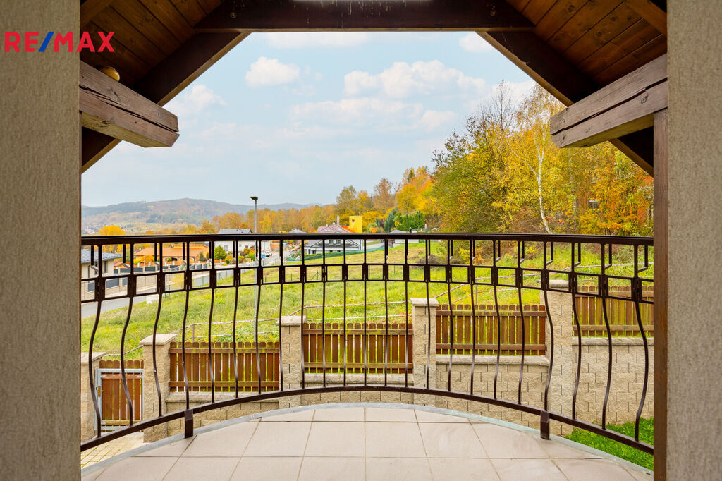 V prvním patře jsou tři další pokoje. Hlavní ložnice disponuje vlastní koupelnou a balkónem, který nabízí nádherný výhled na okolní krajinu. Pro pohodlí celé rodiny je zde navíc druhá koupelna.