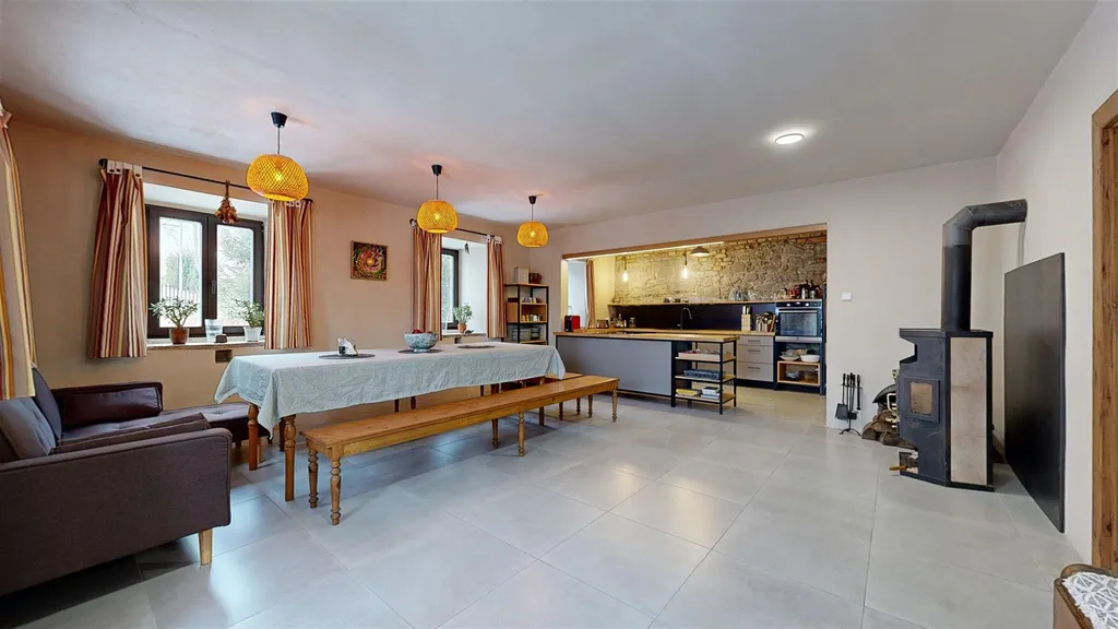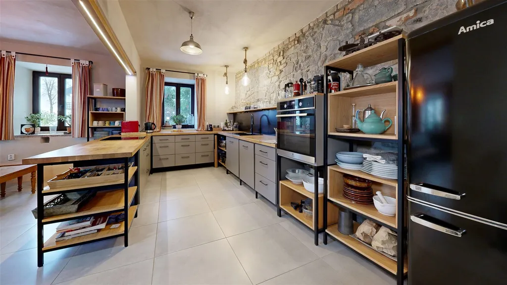 Exkluzivní nabídka dvougenerační patrový rodinný dům 5+2 s velkou zahradou v nádherné krajině Českého středohoří, kam z Ústí nad Labem dojedete za 15 minut a z Litoměřic za 25 minut, který nemůžete minout, protože stojí hned u kapličky, a do kterého se zamilujete, protože byl opraven a vybaven s velkou láskou, vkusem a respektem k domu i místu. V přízemí si v zimě hned zahřejete nohy vytápěnou podlahou v předsíni, kde Vás hned osloví příjemná atmosféra domu a pokračujete do prostorné místnosti s kuchyní, velkým jídelním stolem a krbovými kamny, na kterou navazuje spíž. Na druhou stranu z předsíně vejdete do velké koupelny s vanou, sprchovým koutem a WC, za níž se ještě nachází technická místnost. Za předsíní je velký kamenný sklep využití si jistě najde. Po schodech vyjdete do patra, kde najdete velkou vstupní halu s citlivě zakomponovaným úložným prostorem, dále velkou místnost, která teď slouží k cvičení jógy a setkávání, ložnici pro hosty, ložnici pro majitele domu, další menší koupelnu a WC a pak velmi útulnou kuchyni a k ní přiléhající pokoj, které mohou mít samostatný vstup z boku domu. Ze vstupní haly po schodech lze pokračovat na půdu velkou, sloužící ke skladování věcí, ale i sušení bylin atd. Samostatný vchod pak mají technické a úložné místnosti v přízemí domu. Podsklepený není, ale určitě uložíte vše, co potřebujete. Na zahradě najdete ještě zahradní domek s venkovním posezením a krbem a nevelkou patrovou stodolu, která na své využití ještě čeká. Zahrada je převážně rovinatá nebo mírně svažitá, travnatá se stromy a keři. Dům je napojen na přívod el. proudu, vodu má z vydatné obecní studny na vlastním pozemku, druhá vlastní studna je nevyužívaná, odpad je sveden do septiku. Vytápění je řešeno tepelným čerpadlem, v přízemí je vytápění podlahové, v patře radiátory. V obytné místnosti v přízemí se ještě ohřejete krbovými kamny. V kompletně rekonstruovaném domě jsou zachovány původní prvky, jako výklenky, kamenné parapety, dřevěné podlahy v některých místnostech atd. Díky svým štědrým prostorám může sloužit k bydlení, rekreaci a případně i jako penzion či místo pro setkávání lidí s blízkými zájmy (jóga, workshopy, firemní akce...). Okolí Vás dostane... a nebo si zajedete na výlet do Horní Vysoké, kde se natáčeli Páni kluci, nebo do Úštěku do kavárny či galerie. Ráda Vás domem provedu a podám informace, které se sem nevešly. Energ.třída je uvedena formálně, štítek je ve zpracování.