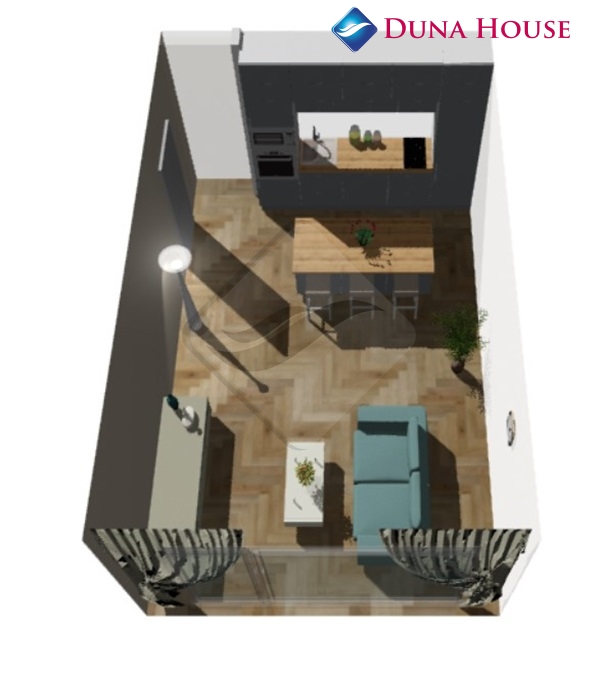 Vizualizace je pouze ilustrační. Jednotka nebude vybavena nábytkem, pouze sanitou v koupelně.