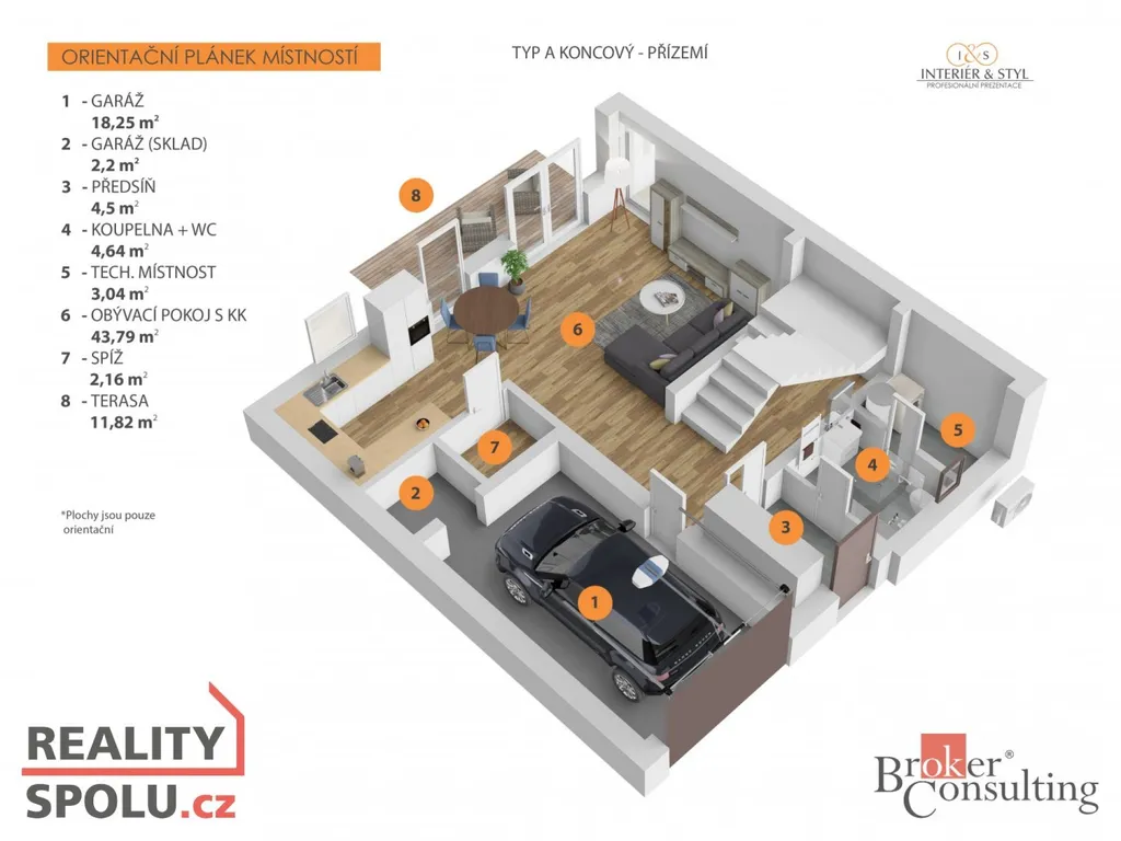 We are pleased to present type A (end of the block) houses in an exclusive project of terraced houses in Ořech u Prahy.
