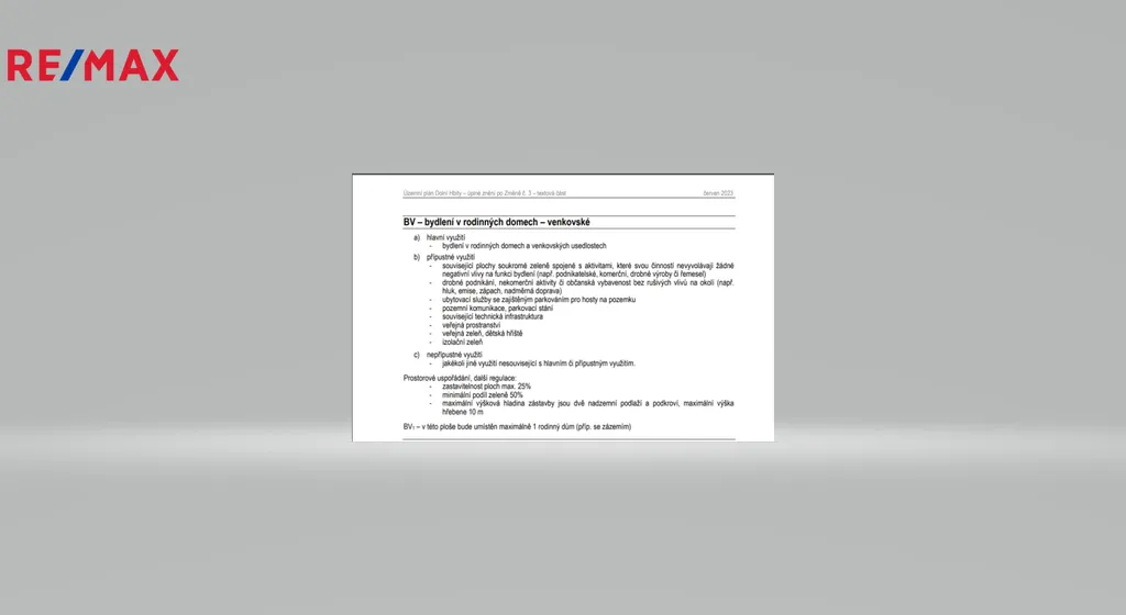Dle územního plánu se jedná o plochu obytnou, bydlení v rodinných domech venkovského charakteru.