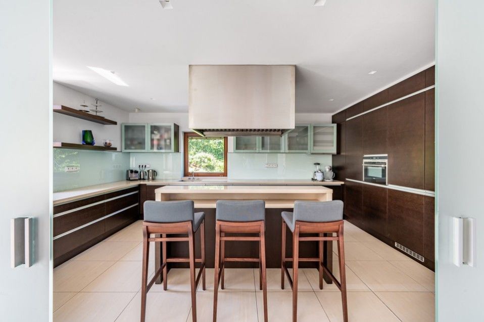 Nadčasová, nízkoenergetická (B), velkoryse pojatá, třípodlažní vila (z roku 2012) s bazénem, prosvětleným  a vzdušným interiérem na slunném upraveném pozemku (2276m2). Dům je součástí uzavřeného, rezidenčního komplexu luxusních vil v mimořádně klidné lokalitě Velká Chuchle v krásné komorní čtvrti Prahy 5 se vzrostlou zelení zasazené do klidného, jedinečného  místa obklopeného vzrostlou zelení, v blízkosti Radotínsko-Chuchelského háje a přírodní rezervace Homolka nabízí ničím nerušené výhledy do zahrady, přilehlé zeleně a panorama Prahy. Luxusně vybavená vila je vhodná i pro vícegenerační bydlení nebo pro velkou rodinu s chůvou.