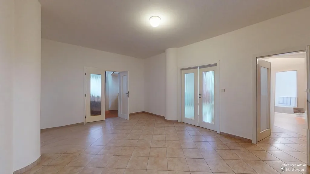 Z vstupní předsíně vstoupíte do velice prostorné centrální haly, které nabízí zajímavé možnosti využití a ze které jsou přístupné všechny ostatních místností. Velkorysý obývací pokoj s jídelním prostorem a francouzskými okny na balkon má výměru téměř 50m2, hlavní ložnice s druhým balkonem 27m2s a zbývající dva pokoje 22, resp. 20m2. K dispozici jsou i dva nadstandartní úložné prostory o výměře 8m2 a 3m2.