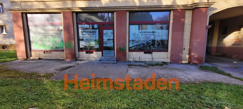 Pronajmeme prostory situovány u výjezdu z náměstí Budovatelů, hlavní vstup a výlohy jsou situovány směrem k frekventované třídě Osvobození.