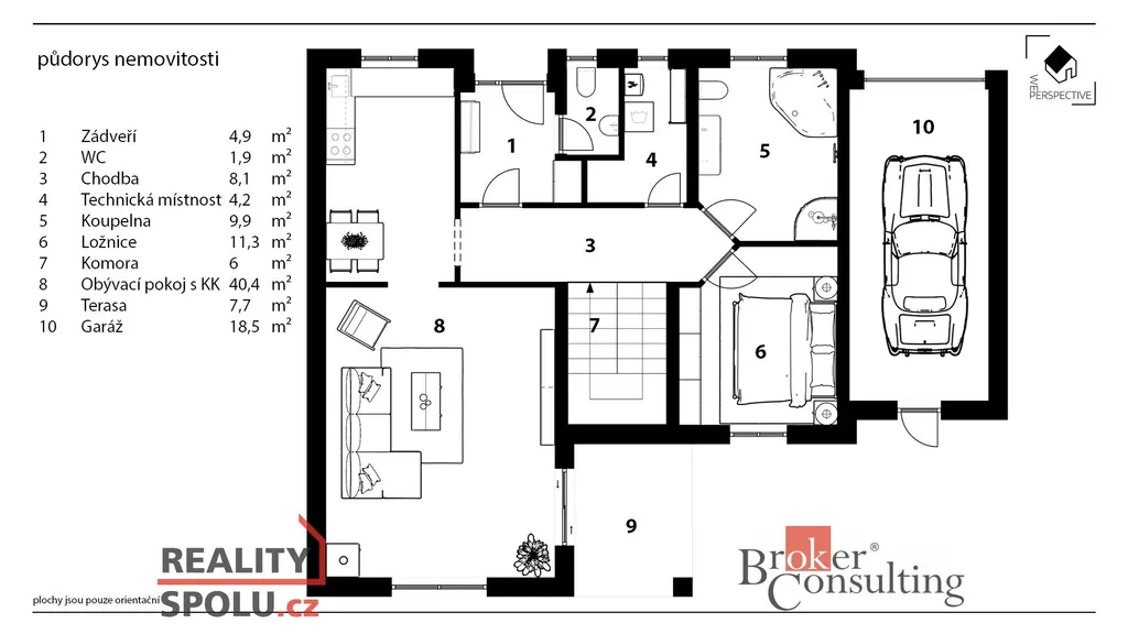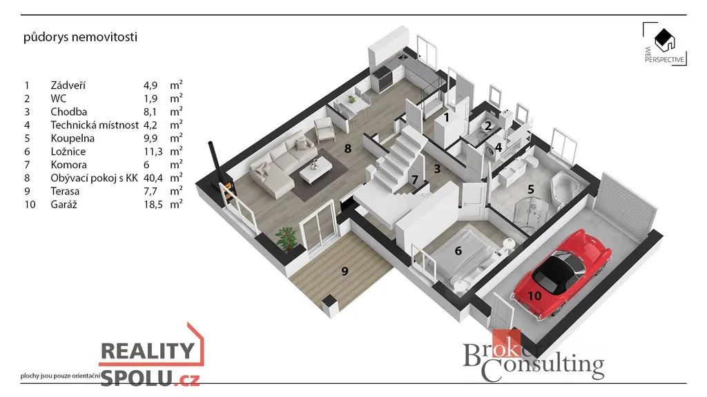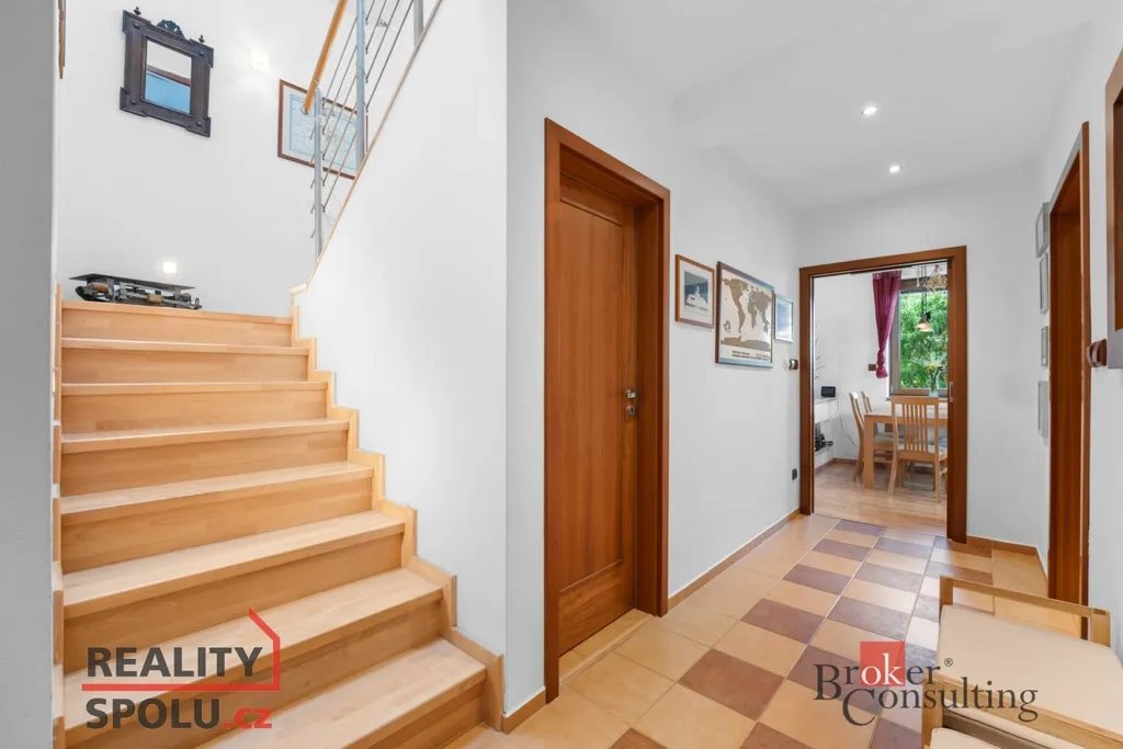 Dvoupodlažní dům o dispozici 6+kk stojí na pozemku o rozloze 1156 m2 s celkovou užitnou plochou 190 m2.