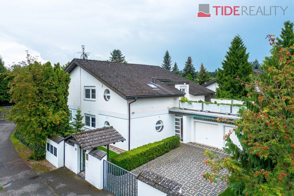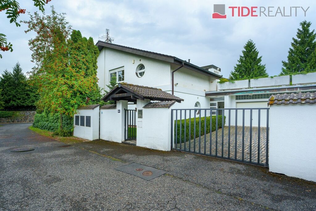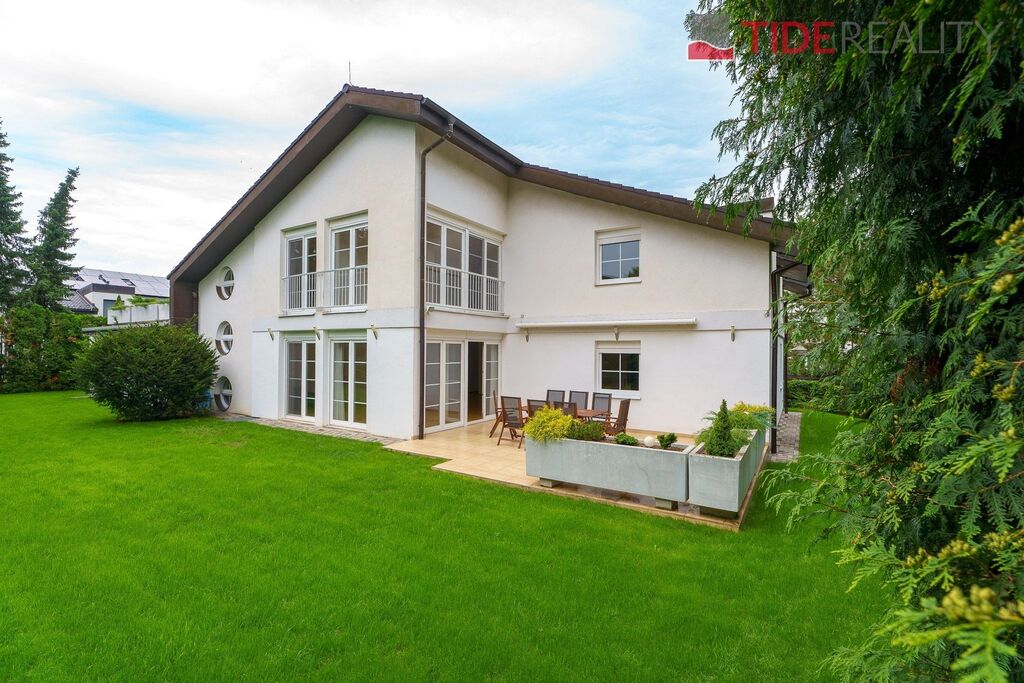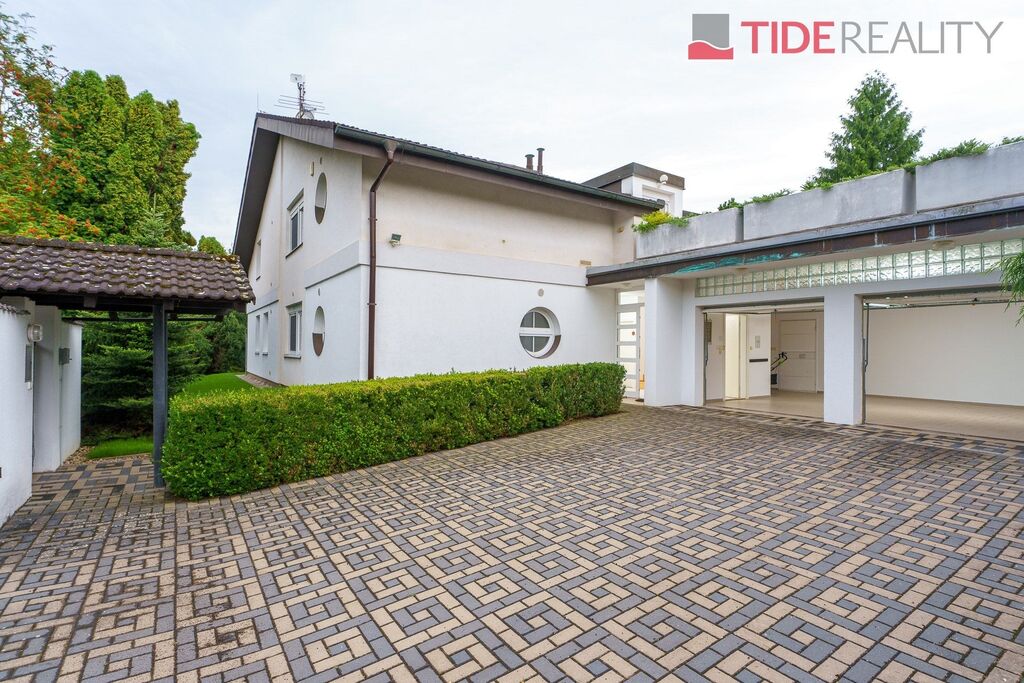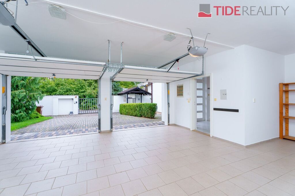 Nabízíme ke koupi velmi prostornou vilu, na nádherném a jedinečném místě Průhonic  v sousedství Průhonického parku. Dům obklopený vzrostlou zelení zajišťující naprosté soukromí může být díky své velikosti i dispozici využívaný i k vícegeneračnímu bydlení. Dům se zastavěnou plochou 283m2, pečlivě udržovanou vzrostlou zahradou o velikosti 717m2, má užitnou plochu 416m2, která je rozložena ve třech podlažích. 1.PP je skladovací/úložný prostor o velikosti 60m2, v 1.NP (197m2) se nachází jednak dvougaráž s přímým napojením na dům a dále především velkoryse řešený obývací pokoj propojený s kvalitní a plně vybavenou kuchyní na celkové ploše 72m2 s východem na jihozápadní terasu a zahradu,  dále 2 prostorné pokoje,  2 koupelny, samostatné WC, kotelna(plyn) pro toto podlaží.