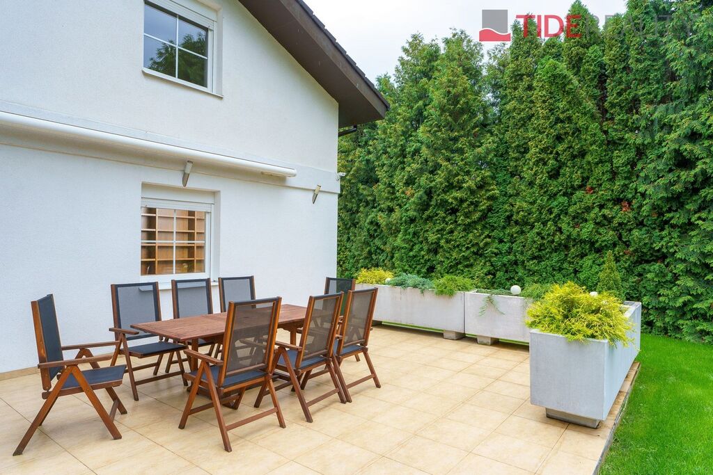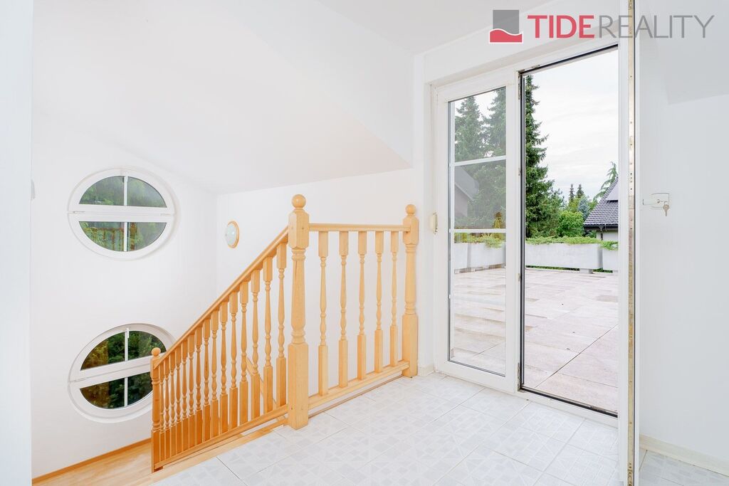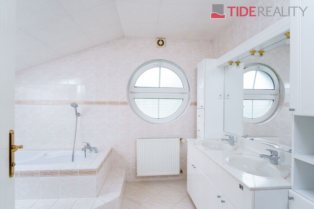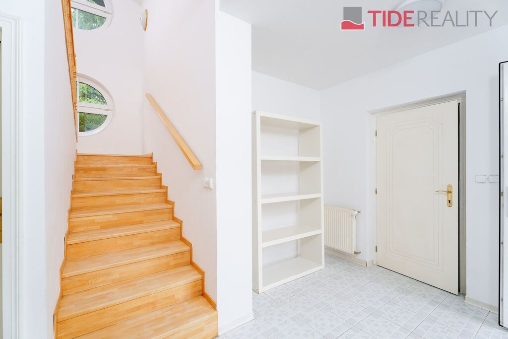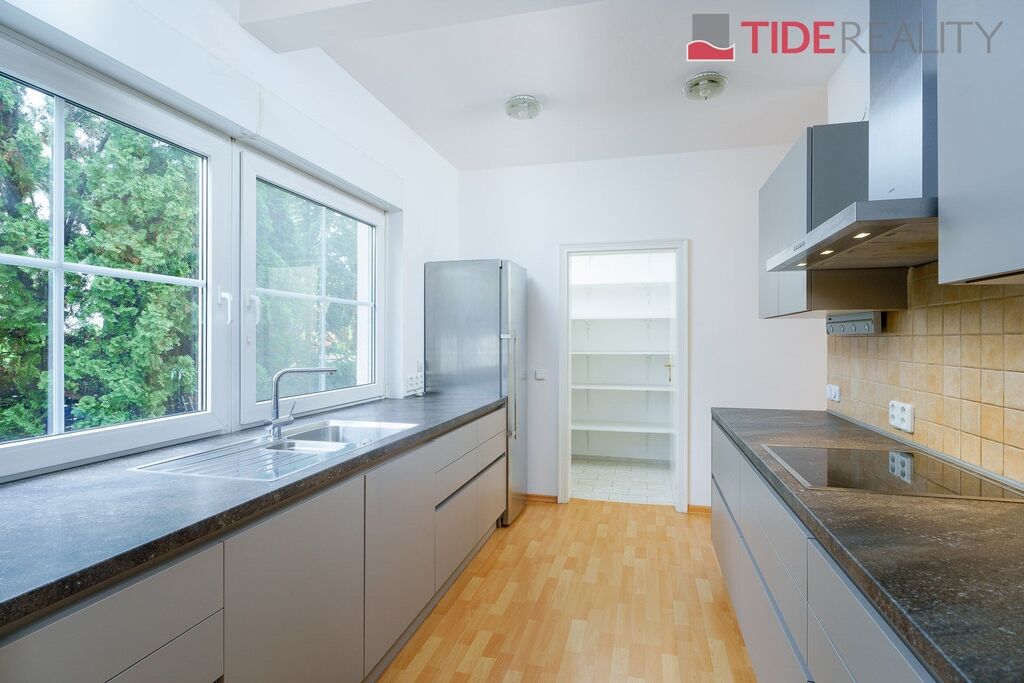 Nabízíme ke koupi velmi prostornou vilu, na nádherném a jedinečném místě Průhonic  v sousedství Průhonického parku. Dům obklopený vzrostlou zelení zajišťující naprosté soukromí může být díky své velikosti i dispozici využívaný i k vícegeneračnímu bydlení. Dům se zastavěnou plochou 283m2, pečlivě udržovanou vzrostlou zahradou o velikosti 717m2, má užitnou plochu 416m2, která je rozložena ve třech podlažích. 1.PP je skladovací/úložný prostor o velikosti 60m2, v 1.NP (197m2) se nachází jednak dvougaráž s přímým napojením na dům a dále především velkoryse řešený obývací pokoj propojený s kvalitní a plně vybavenou kuchyní na celkové ploše 72m2 s východem na jihozápadní terasu a zahradu,  dále 2 prostorné pokoje,  2 koupelny, samostatné WC, kotelna(plyn) pro toto podlaží.