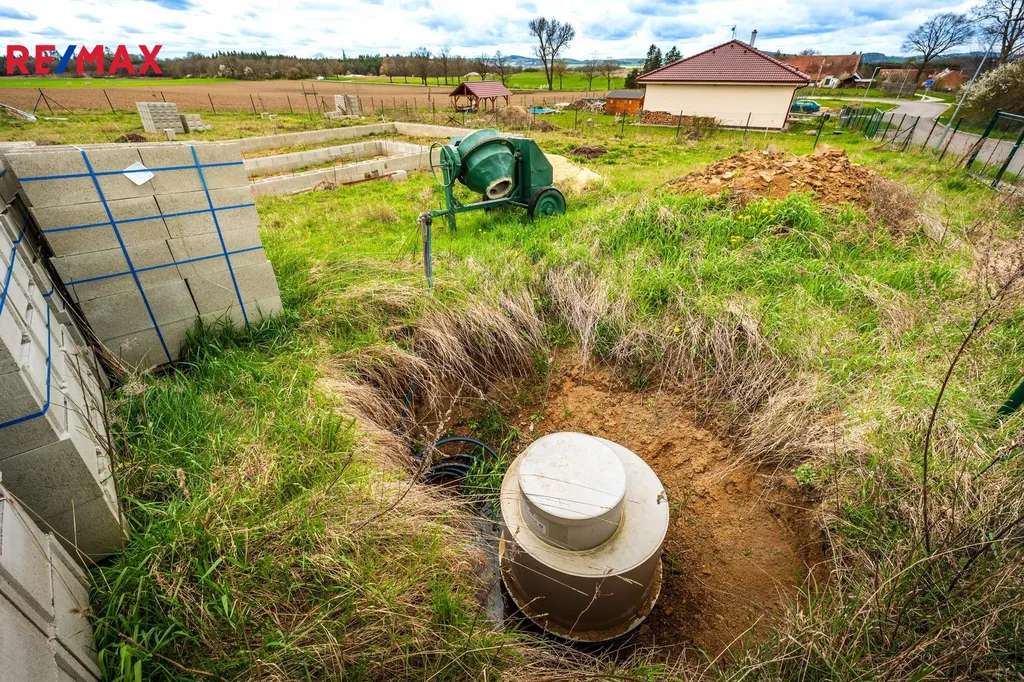 Nabízený pozemek prošel nákladnými úpravami, pro nového majitele je zde již zajištěno: kompletní oplocení pletivovým plotem s brankou a vraty pro vjezd techniky (realizace 100.000,- Kč), napojení na obecní vodovod s instalací vodoměrné šachty a přivedení elektřiny vč. instalace elektrického rozvaděče (realizace 25.000,- Kč). Dále byly na pozemku provedeny terénní úpravy v podobě sejmutí ornice a vykopání základů (realizace 140.000,- Kč). Základy jsou vylité do 100 – 120 cm hloubky, a to včetně položení hromosvodu. Ztracené bednění není zalité betonem.