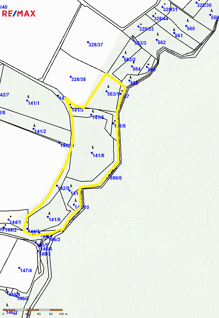 - p. č. 141/8 o výměře 6 634 m² lesní pozemek