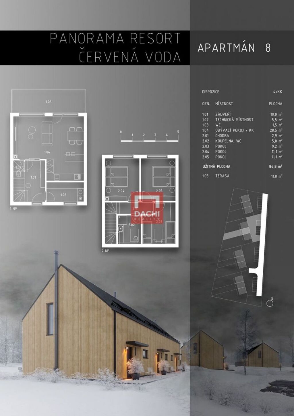 Nabízíme vám exkluzivní horské apartmány v projektu Panorama Resort Červená Voda, který se nachází na pomezí Orlických hor a Jeseníků. Apartmány nabízí úchvatný výhled na ski areál Buková Hora a okolní lesy. Celkem projekt zahrnuje 12 jednotek ve 4 trojdomech s privátním příjezdem, což vám zajistí soukromí a klid.