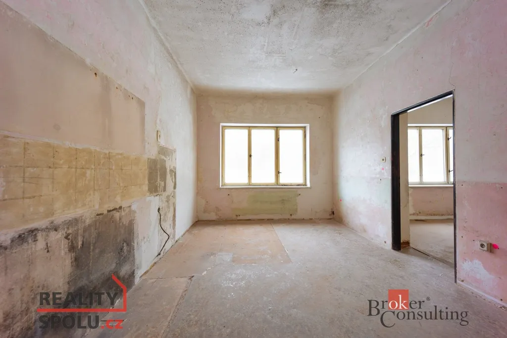 Jedná se o patrovou budovu, která má v přízemí komerční prostory 40m2 s výlohou do ulice a bytovou jednotku 2+1, 51m2.