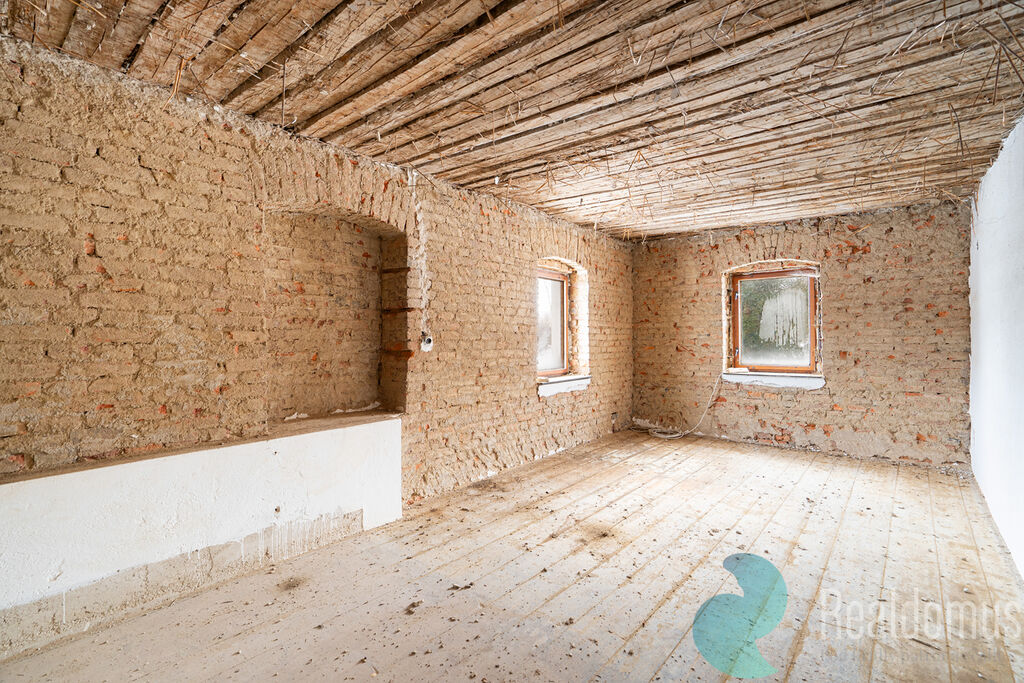 Nabízíme k prodeji venkovskou usedlost s rozsáhlými pozemky v malebné krajině předhůří Šumavy, která se nachází pouhých 7 km od historického města Prachatice. Celková výměra pozemků činí 4718 m2 (pouze 759 Kč/m2 při aktuální prodejní ceně), z toho zastavěná plocha dosahuje 280 m2 a plocha zahrady je 3866 m2. Dům se aktuálně nachází ve fázi rekonstrukce, což poskytuje možnost přizpůsobit si interiér podle vlastních požadavků. Interiér je již vyčištěn, omítky byly odstraněny a prostor je připraven na instalaci rozvodů vody, elektřiny a odpadů. Vytápění je v současné době nezajištěno, avšak v jednom z pokojů se nacházejí stylová kachlová kamna v dobrém stavu, která mohou sloužit k prvotnímu vytápění.