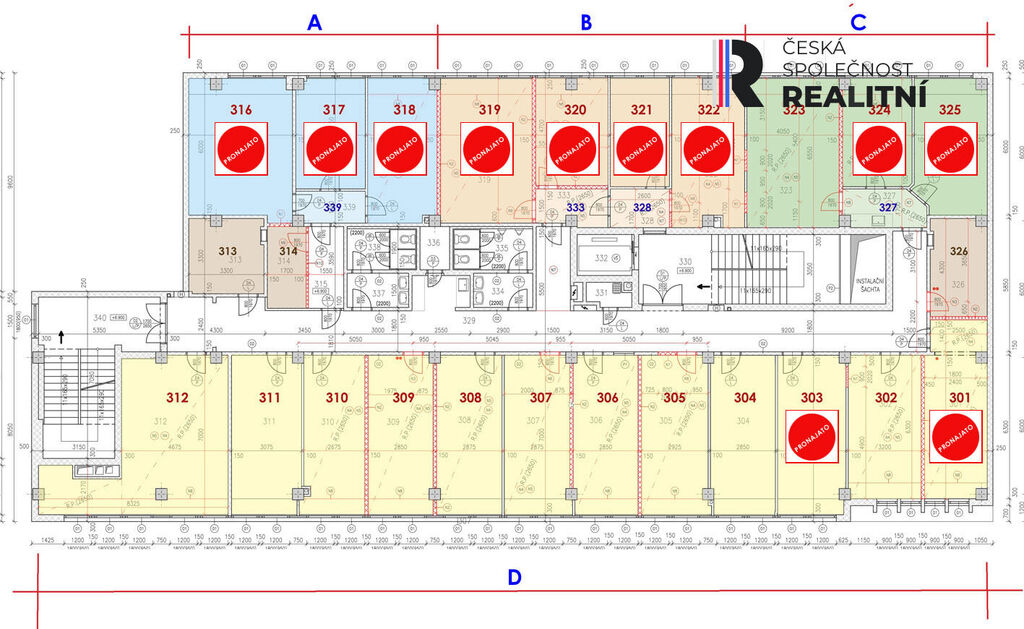 - velikost 25,08 m2, kancelář 422, cena nájemné 4.774,52 Kč + energie a služby 2.331,48 Kč (7.106,- Kč) + DPH, k dispozici ihned,