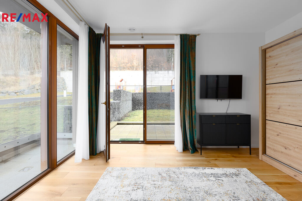 Byt má 67 m² a je navržen tak, aby byl světlý, útulný a maximálně pohodlný. Nejvíce si užívám ložnici s velkými francouzskými okny, která mě ihned propojí s okolní krajinou. Odtud mám přímý vstup na terasu se zahradou o velikosti 64 m² – a to je naprostá paráda! Je tu dostatek místa na grilování, relaxaci na lehátku a příjemné posezení na čerstvém vzduchu. Na zahradě si můj pes rád běhá a užívá volnost.Každé ráno začínám den s šálkem kávy na čerstvém vzduchu a večer si užívám klidné chvíle pod hvězdami.