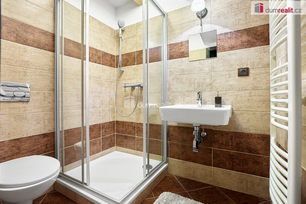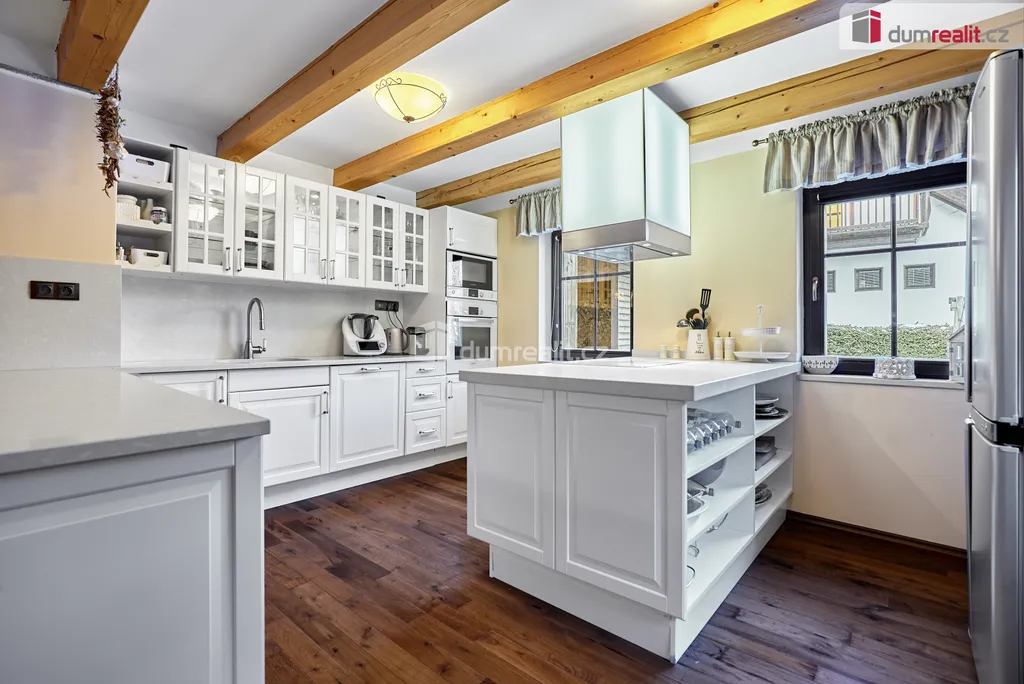 RD je zděný, částečně podsklepený, s podlahovou plochou 230 m². Dispozice domu zahrnuje prostorný obývací pokoj s krbovými kamny, kuchyň s kuchyňskou linkou na míru, jídelnu, 3 ložnice s vlastními koupelnami a WC. V přízemí je finská sauna vč. sprchy a odpočívárny, zimní zahrada s terasou a vstupem na zahradu. Dále je zde prostorná chodba vč. schodiště, zádveří, samostatné WC a technická místnost. Dům má velký půdní prostor (možnost vybudování další obytné místnosti). Vytápění domu a ohřev vody je zajištěn plynovým kotlem. Dům disponuje elektronickým zabezpečovacím systémem, finskou saunou, venkovní vířivkou a dalšími luxusními prvky. Po kompletní rekonstrukci, kdy byl kladen důraz na kvalitu použitých materiálů, provedení ale i vybavení domu, je dům připraven k okamžitému nastěhování bez dalších investic.