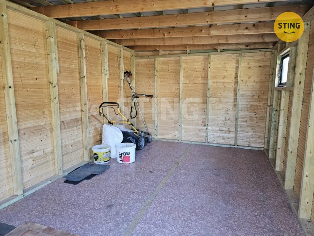 Na pozemku dále naleznete skleník z polykarbonátu, posezení s ohništěm pro večerní posezení a nově postavenou prostornou kůlnu, která poskytne dostatek místa pro uskladnění všeho potřebného. Mezi původní chatou a plotem je navíc prostor pro vybudování parkovacího stání.