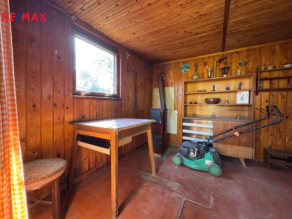 Chata o užitné ploše 19 m² je obklopená oplocenou zahradou o evidované výměře 328 m² se nachází v zahrádkářské kolonii Na Stráni ve Slavoníně. Chata je částečně podsklepená s možností přespání v podkroví, každopádně pro její další využívání doporučujeme její modernizaci/renovaci. V zadní části chaty se také nachází zastaralé suché WC. Na zahradě se nachází starší skleník, přístřešek s posezením, kumbál pro zahradní náčiní a nádrže na zachycení dešťové vody. V současné době bylo zažádáno o elektrické připojení, kterému bylo vyhověno a čeká se na jeho realizaci. Více informací o této zakázce získáte u makléře prodeje. Zajistíme Vám financování koupě této nemovitosti – bezplatná konzultace s našim finančním poradcem. Bližší informace u makléře nabídky.