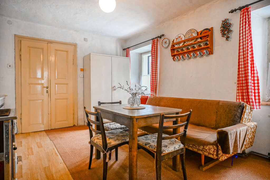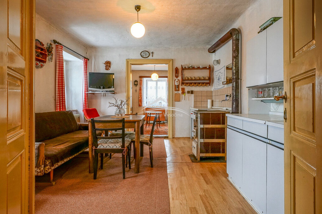 Dispozice domu zahrnuje tři obytné pokoje, malou koupelnu se sprchovým koutem a toaletou, prostorná ložnice, obývací pokoj, kuchyň, dětský pokoj a pod částí domu se nachází krásný kamenný sklep. Nemovitost je napojena na veškeré inženýrské sítě – elektřinu 220/380V, plyn, obecní vodovod a odpady svedené do velkého tříkomorového septiku.