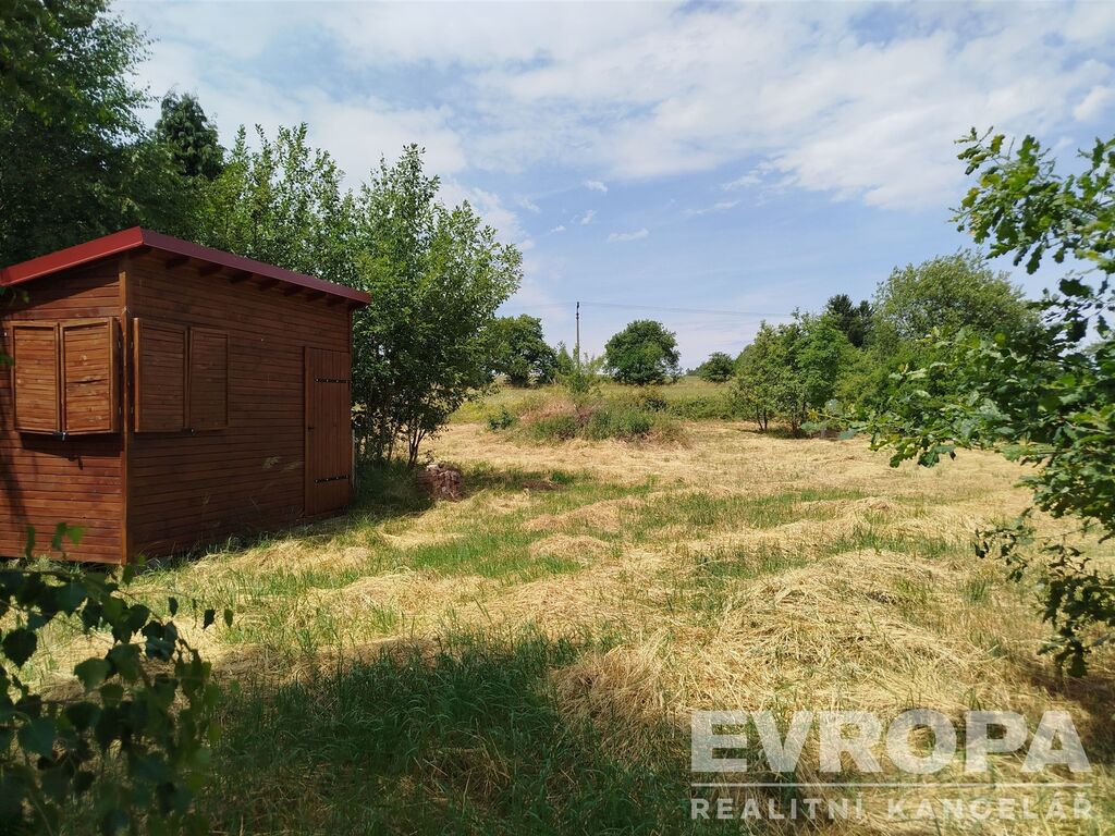 Na pozemku je v postaven zahradní domek 3,5 x 2,5 m, sloužící jako zázemí a sklad nářadí. zahradní domek je součást prodeje a je zahrnut v ceně.
