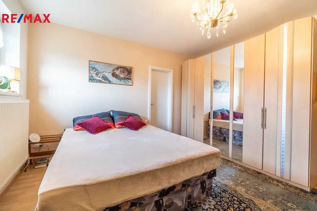 Horní patro (2. NP) – 4 pokoje s vlastní koupelnou a WC, 2 pokoje mají francouzský balkon; každý člen domácnosti má své soukromí.