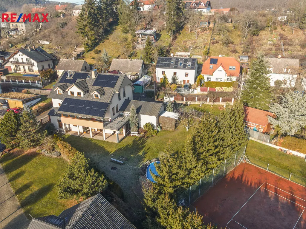 Areál o rozloze 2 339 m² je kompletně vybavený a udržovaný, s relaxačními zónami, bazénem, tenisovým kurtem a pečlivě upravenou zahradou. Střecha byla dvakrát zateplena foukanou izolací, což zajišťuje výraznou úsporu energií a dlouhodobou ochranu objektu.