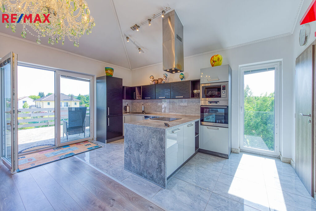 Ve výhradním zastoupení majitele nabízíme k prodeji novostavbu vícegenerační luxusní vily s užitnou plochou 456 m² ve Velkých Popovicích – Brtnici (okres Praha – východ), vzdálené 25 km od Prahy. Jedná se o velkorysou nemovitost, která je v současnosti tvořena dvěma oddělenými bytovými jednotkami v rámci dvou podlaží, které lze v případě potřeby propojit. Dále je v nemovitosti přízemní prostor připravený pro výstavbu vnitřního bazénu s proskleným vstupem na terasu.