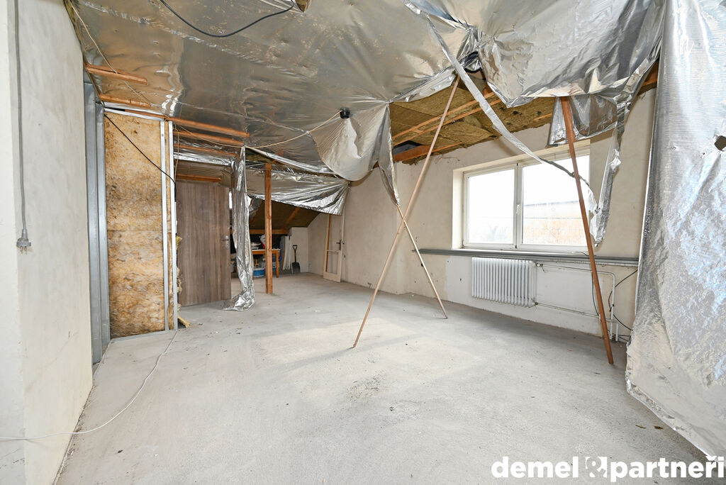 Historie domu sahá do 70. let, ale nedávno byla zahájena rekonstrukce domu. Ta je tedy aktuálně nedokončená, ale práce, které jsou provedené můžeš využít. Základem domu je střecha. Krovy jsou jako nové, takže zde tě investice už nečeká. Dům má většinu elektroinstalace v mědi, a rozvody vody a odpadů v plastu. Dům je vytápěný kotlem na tuhá paliva, který je ale aktuálně po smrti. Takže v rámci rekonstrukce je potřeba počítat s novým kotlem.