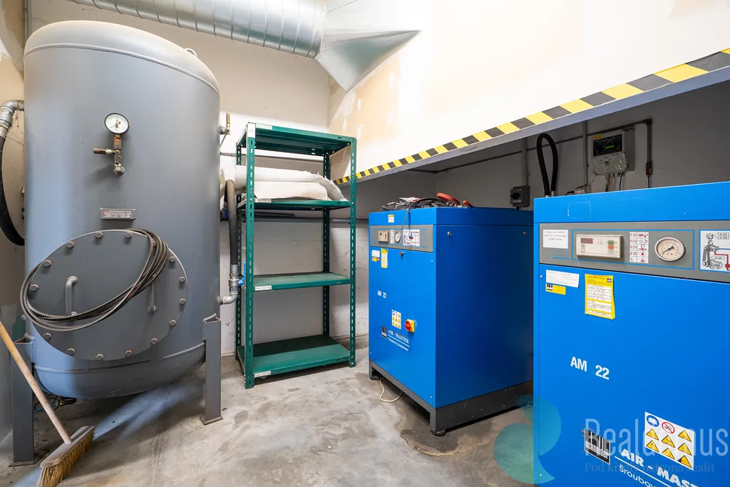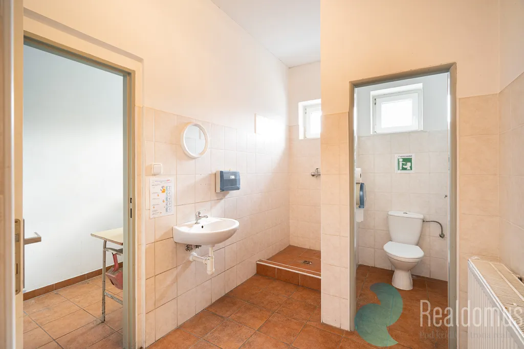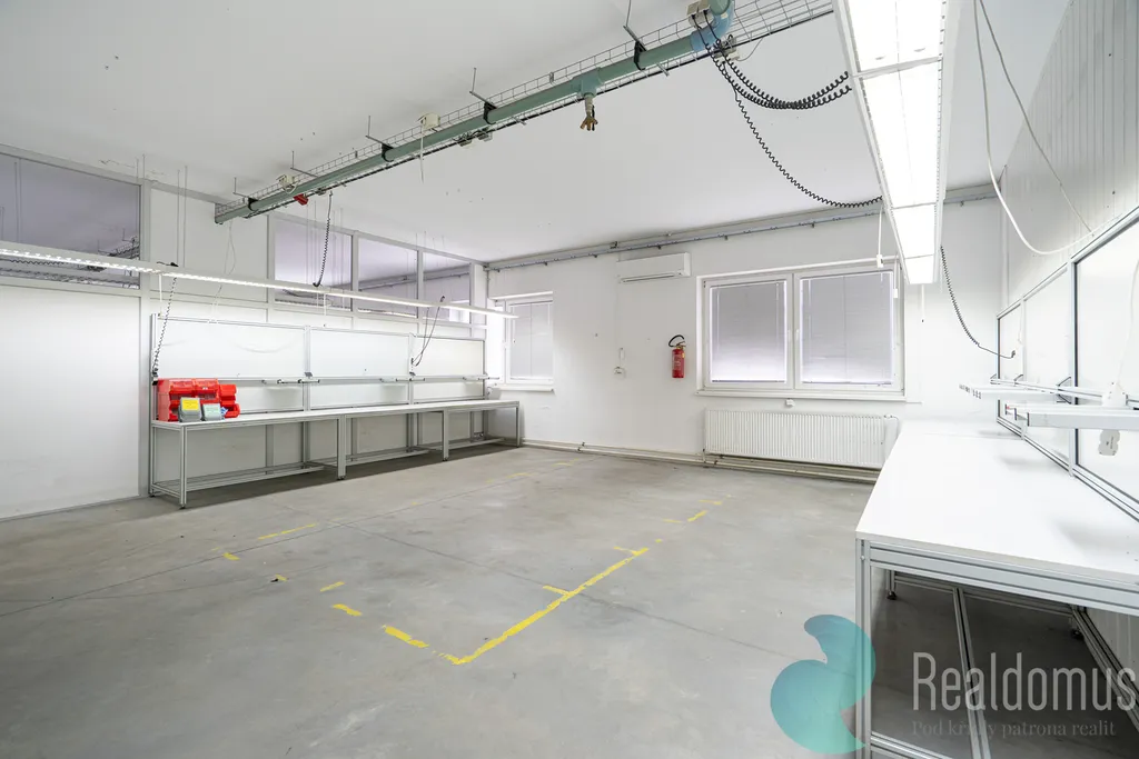 Administrativní část (200 m2) tvoří 3 kanceláře, přijímací hala, archiv, kuchyňka a WC pro administrativní pracovníky a přístupová chodba.