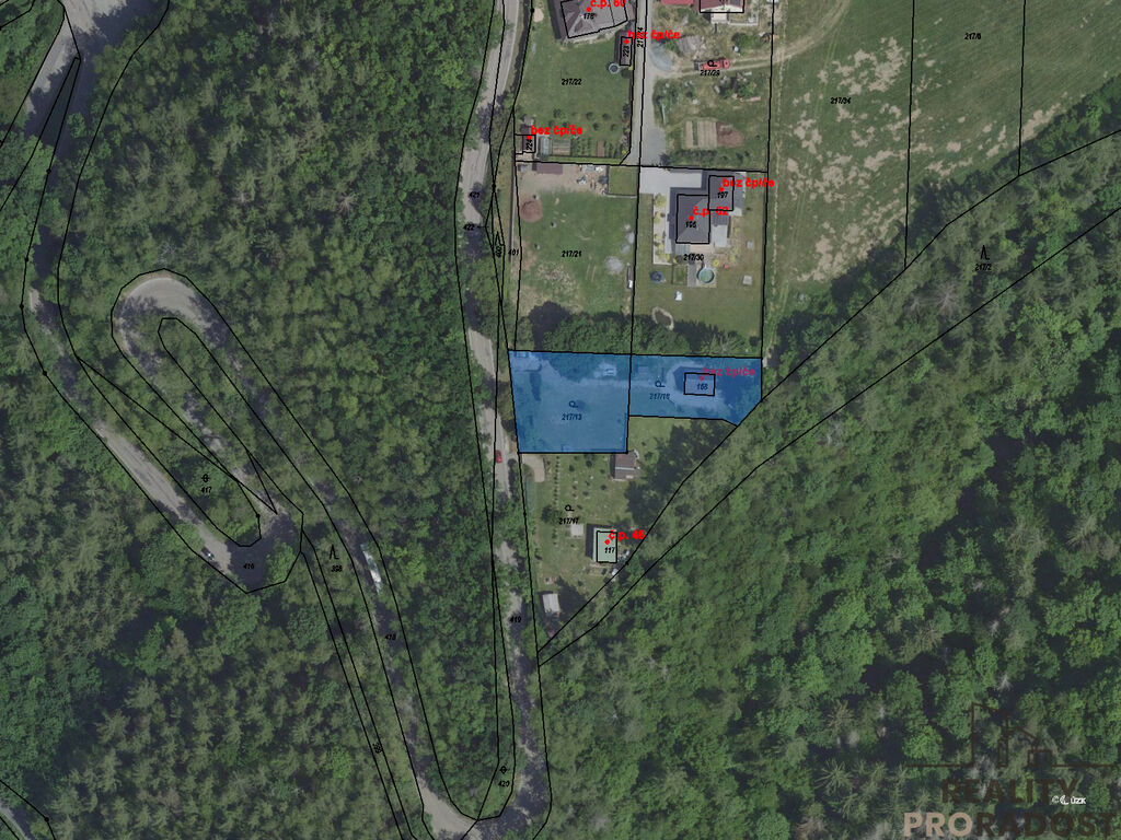 Pozemek je mírně svažitý, nepravidelného tvaru a celý oplocený. Přístup je zajištěn zpevněnou obecní cestou přes vjezdovou bránu. Uliční šířka činí přibližně 30 m. V přední části je dostatek prostoru pro parkování, pěstování zeleniny či výsadbu ovocných stromů. K dispozici je také společná studna.