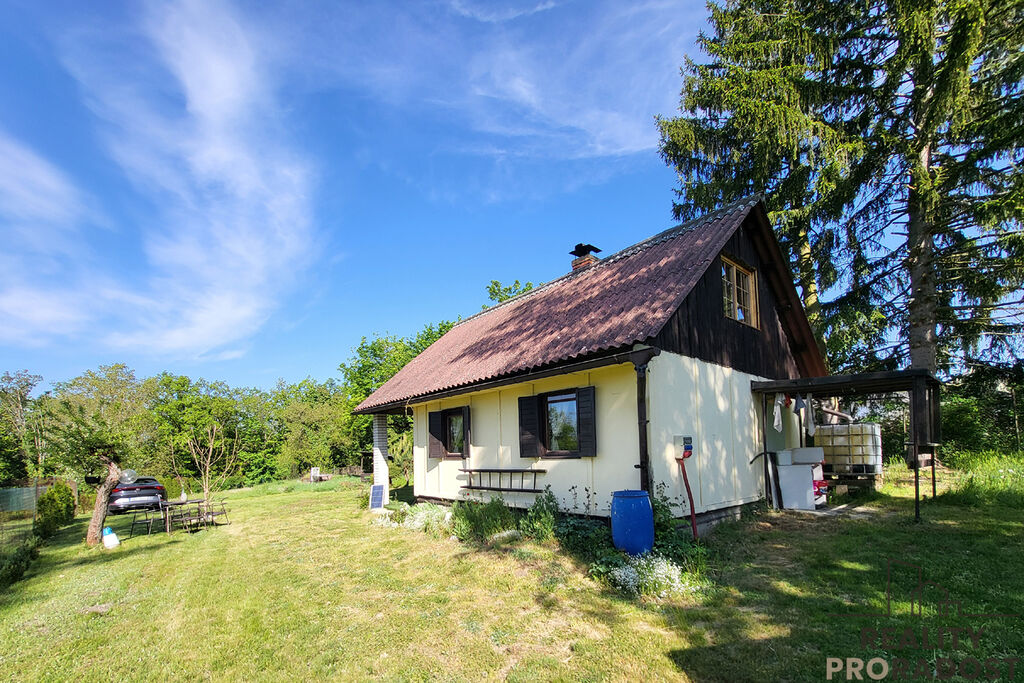 Na zadní části pozemku, s krásným výhledem do okolní krajiny, stojí chata, která je součástí projektu pro výstavbu rodinné rekreační novostavby. Pro tuto stavbu je vydané platné stavební povolení se zastavěnou plochou až 140 m². Chata je uzpůsobena k celoročnímu užívání. Součástí je i prostor pro technické zázemí a přímý vstup do lesa, který poskytuje jedinečné spojení s přírodou.