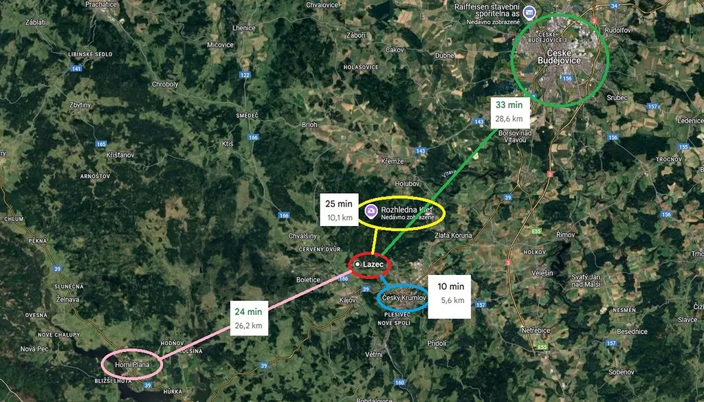 Dům je umístěný na jihozápadní části osady, s krásným výhledem do krajiny. Jedná se o velmi klidné místo obklopené lesy a přírodou CHKO Blanský les a CHLÚ Křenov. Český Krumlov 5km, Kleť 10km, Šumava- Lipno nad Vltavou 35km.