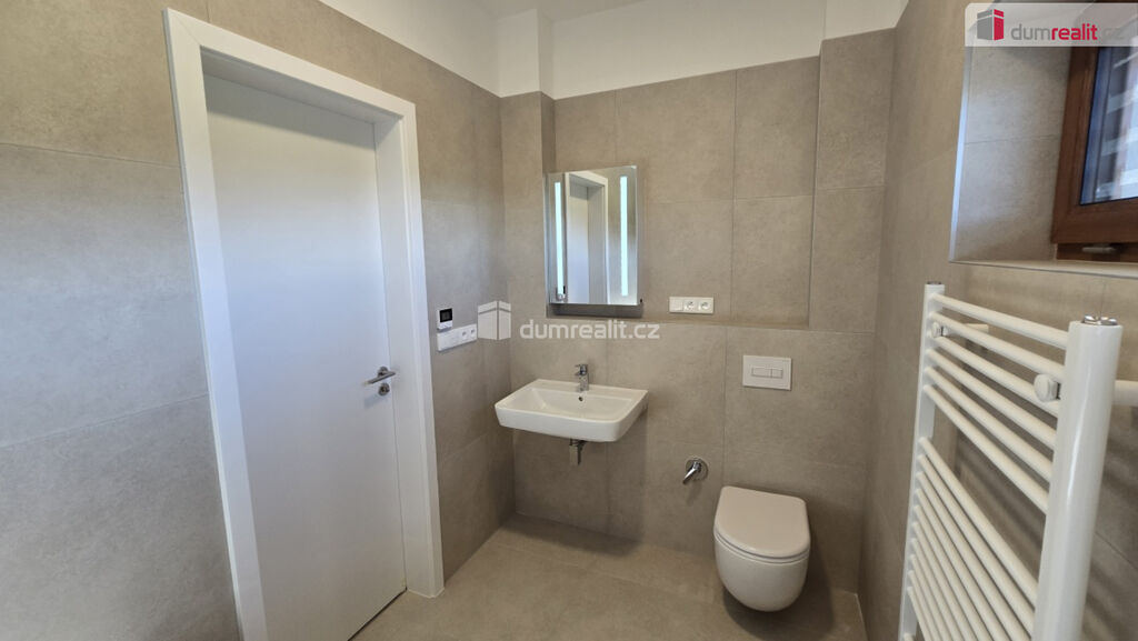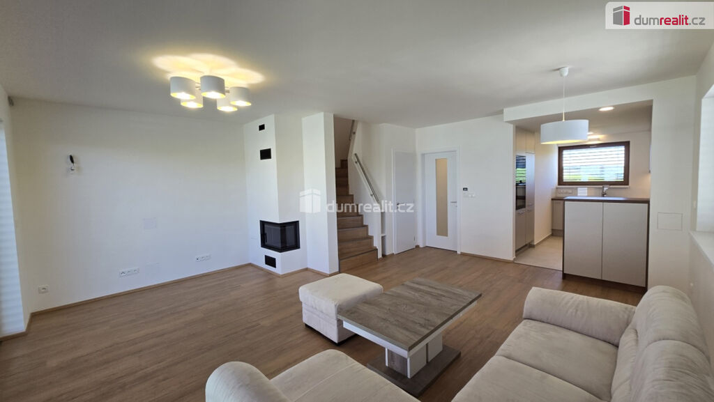 Tento dům je vybaven špičkovým teplovodním podlahovým vytápěním s kondenzačním kotlem pro dokonalý tepelný komfort a keramickým komínem s přípravou pro krb, což dodává interiéru na útulnosti a stylu. Impozantní interiérové dveře o výšce 2100 mm přidávají na luxusu a eleganci. Panoramatická posuvná okna v obývacím pokoji vedou přímo na zahradu a propojují interiér s exteriérem, což přináší jedinečný pocit prostoru a propojení s přírodou.