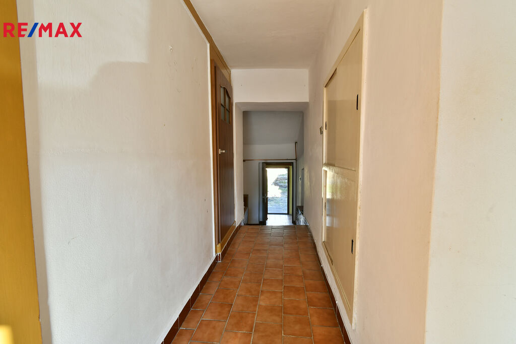 vstupní chodba, obývací pokoj, ložnice, dva menší pokoje, samostatné WC, kuchyně, koupelna s vanou, komora a následně zadní vchod do dvora.