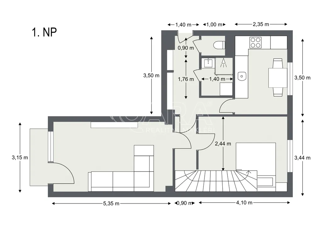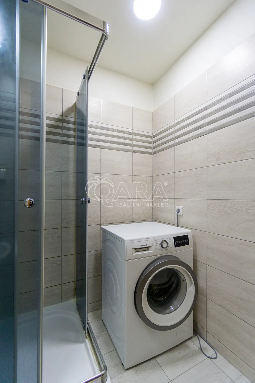 Byt disponuje částečným vybavením a prošel nedávnou renovací, v rámci které byla instalována plastová okna, nová koupelna a WC. Koupelna je vybavena sprchovým koutem, umyvadlovou skříňkou a pračkou. Okna jsou orientována na jiho-západ, což zajišťuje dostatek přirozeného světla a příjemnou atmosféru v celém bytě. V horním podlaží lze zrekonstruovat z prostorné chodby další místnost ( kancelář, pokoj atd).