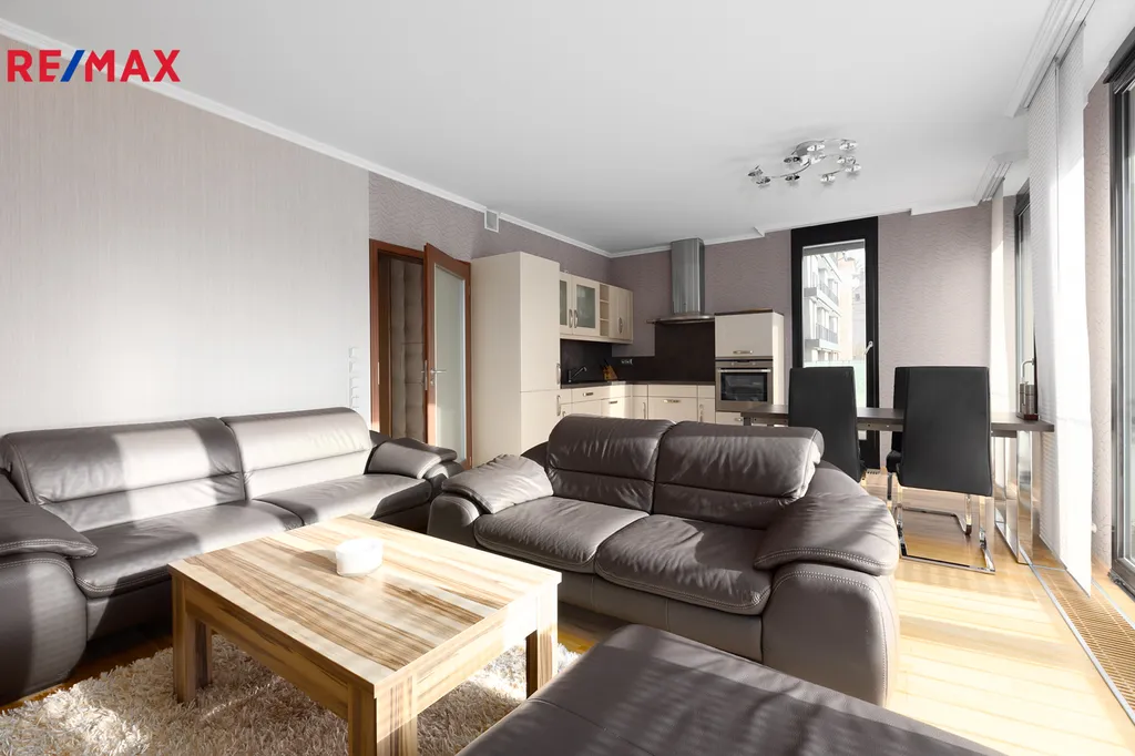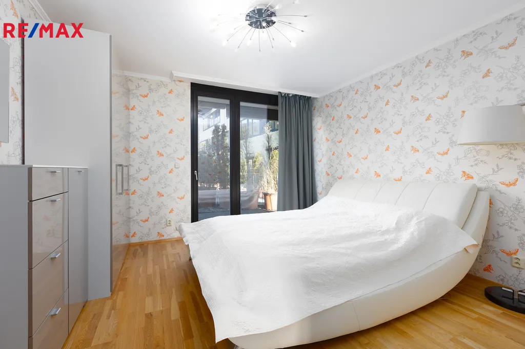 Díky francouzským oknům je byt krásně prosvětlený a nabízí úžasný výhled. Pro ještě větší komfort jsou okna vybavena žaluziemi, které chrání byt před přehříváním a umožňují regulovat množství denního světla podle potřeby.