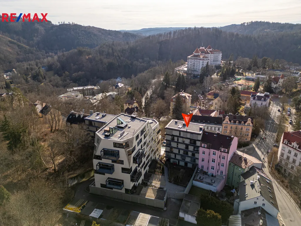 Lokalita je ideální, v bezprostřední blízkosti se nachází škola, školka, obchody, zastávky MHD, Lanovka Imperial, která vás pohodlně dopraví do historického centra města - Kolonádě. Byt je připraven k okamžitému nastěhování bez nutnosti dalších investic. Díky své poloze, vysokému standardu vybavení a výjimečné terase se jedná o skvělou volbu jak pro investory, tak pro ty, kteří hledají luxusní městské bydlení.