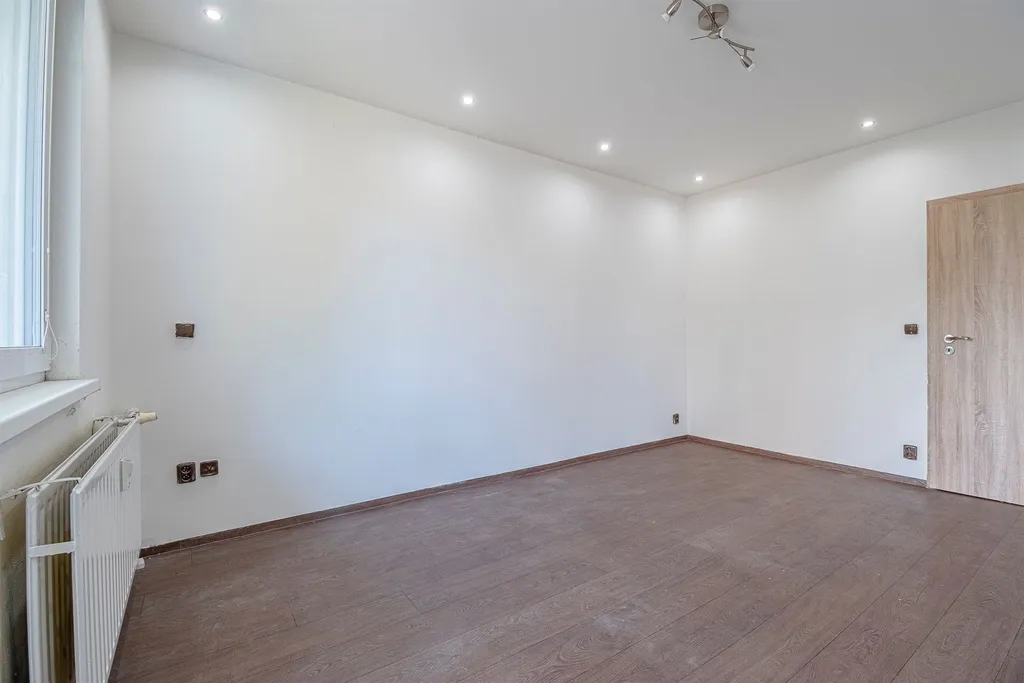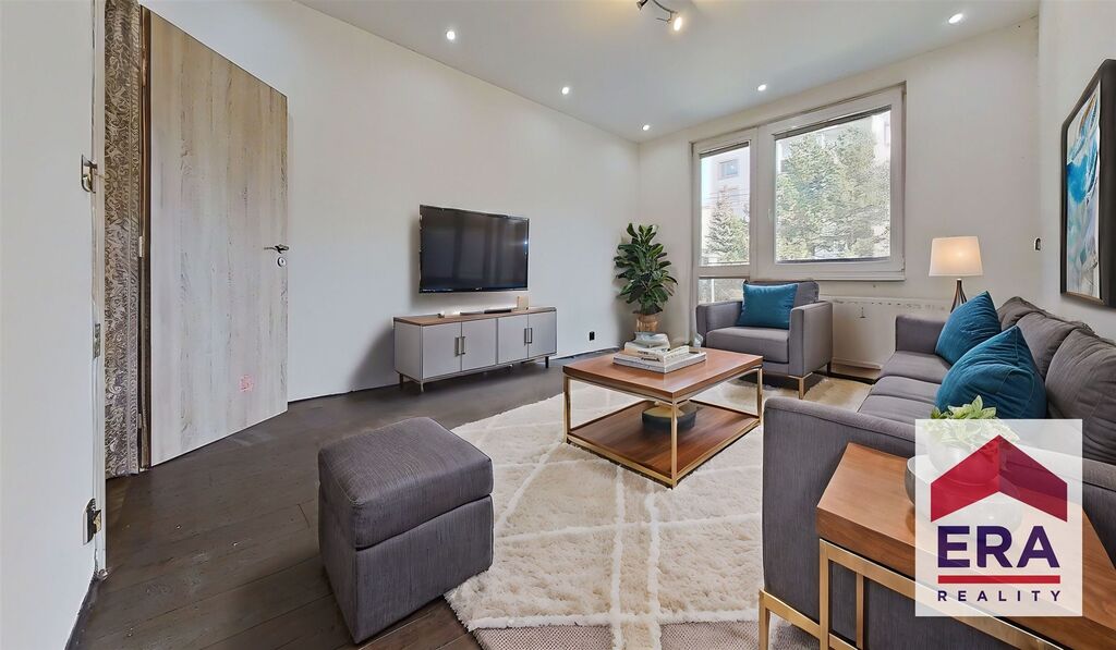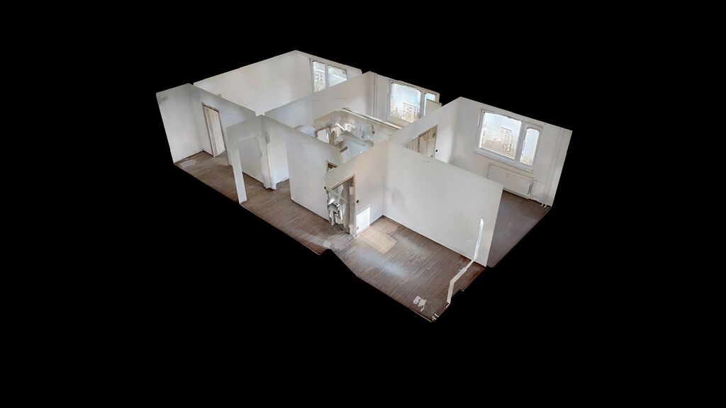 Dispozice: vstup - chodba - kuchyně - pokoj za kuchyní - koupelna se sprch. koutem a prostorem na pračku - obývací pokoj s lodžií - třetí menší pokoj - samostatné WC. K bytu je k dispozici samostatná sklepní kóje v suterénu budovy.