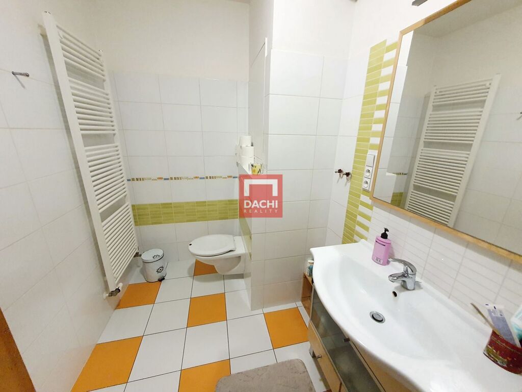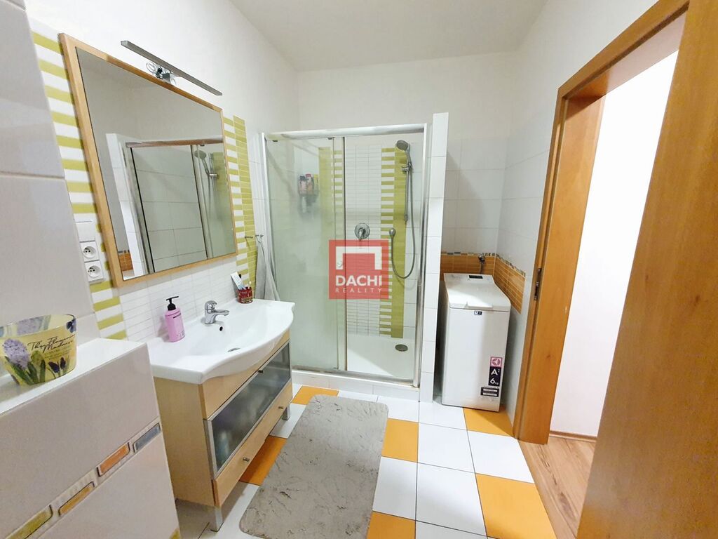 Kuch. kout včetně el. spotřebičů, podlahy dlažba, plovoucí. Soc. zázemí sprch. kout, WC, připojení na pračku.