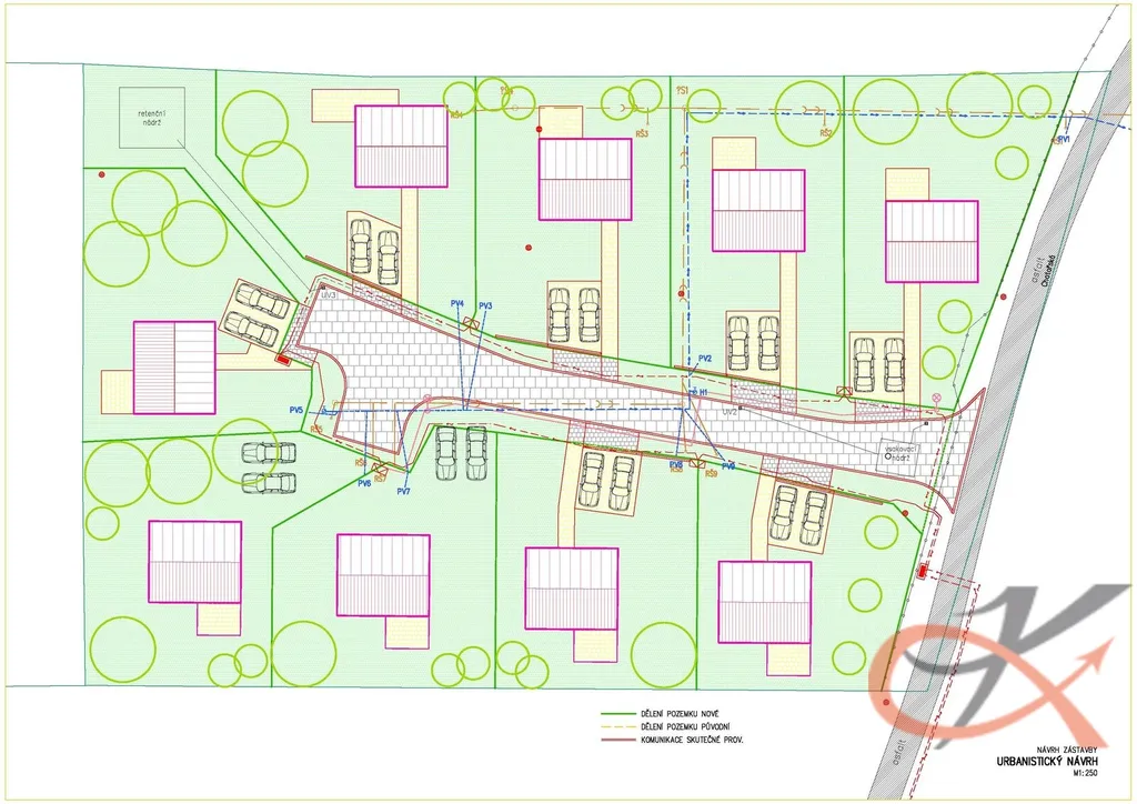 Přístup na pozemek je po obecní asfaltové komunikaci a nabízí připravené inženýrské sítě (vodovod, kanalizace, elektřina a veřejné osvětlení) na hranici pozemku.