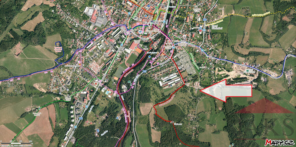 Popis: slunný, mírně svažitý, oplocený obdélníkový, kompletně zasíťovaný, připravený pozemek k výstavbě s výjimečným výhledem jak na město, kapli Anděla Strážného („Andělíček“) tak i horu Svatobor.