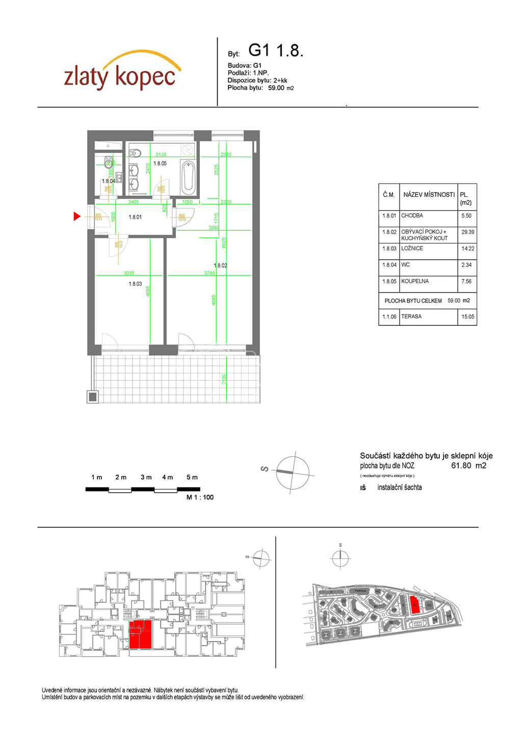 Nabízíme na prodej prostorný byt 2+kk s terasou a předzahrádkou, který se nachází v projektu Zlatý kopec, novostavba z roku 2025. Bytový projekt s moderními prvky a kvalitním vybavením je umístěn v těsné blízkostí s pražskou čtvrti Vinoř a má vynikající dopravní spojeni s Prahou. Podlahová plocha bytu 62 m2 + terasa 15 m2 + předzahrádka 25 m2. V koupelně se nachází vana a WC. V ceně bytu je sklep a parkovací stání. Orientace bytu je na západ. Veřejnou dopravu pro obec obsluhují celkově tři linky MHD. Zastávka autobusu je umístěna přímo u bytového projektu. Přímé spojení do stanice metra Letňany, Palmovka a Prosek, kde se dostanete za 15 min. Cesta autem do stanice metra Letňany trvá cca 10 minut. Obec Přezletice s širokou občanskou vybavenost nabízí svými obyvatelům pohodlné bydlení v blízkosti hlavního města.